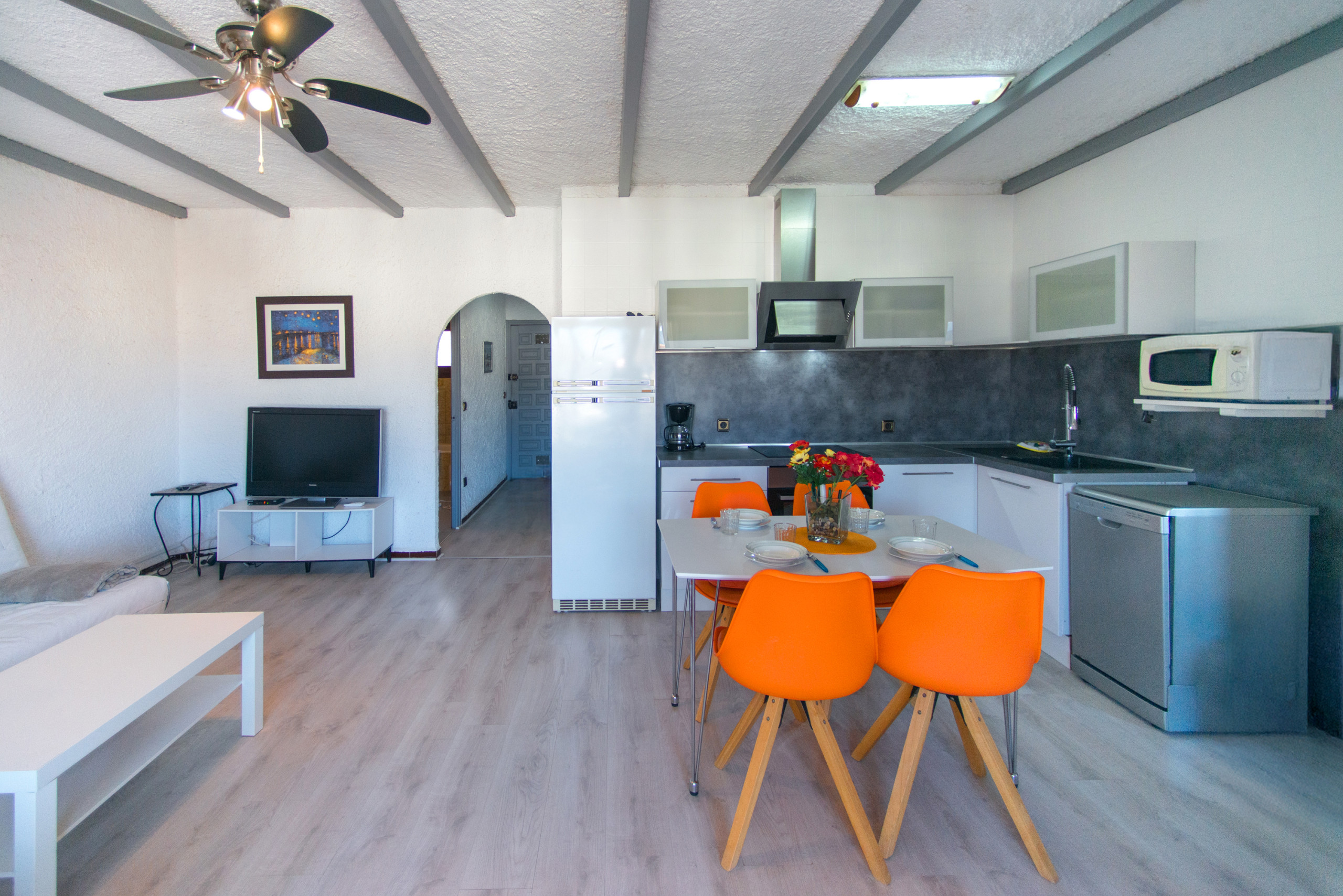 Los apartamentos cuentan con 2 dormitorios y un amplio salón-cocina con ventanales panorámicos que se abren a una terraza privada. El espacio está diseñado para alojar cómodamente hasta 6 personas, con todo lo necesario para una estancia confortable: 2 camas dobles, un sofá doble, mesa de comedor, ducha, televisión, aire acondicionado, conexión WiFi y una cocina completamente equipada con frigorífico, estufa, microondas, cafetera, tostadora, hervidor de agua y todos los utensilios necesarios para preparar tus comidas favoritas.