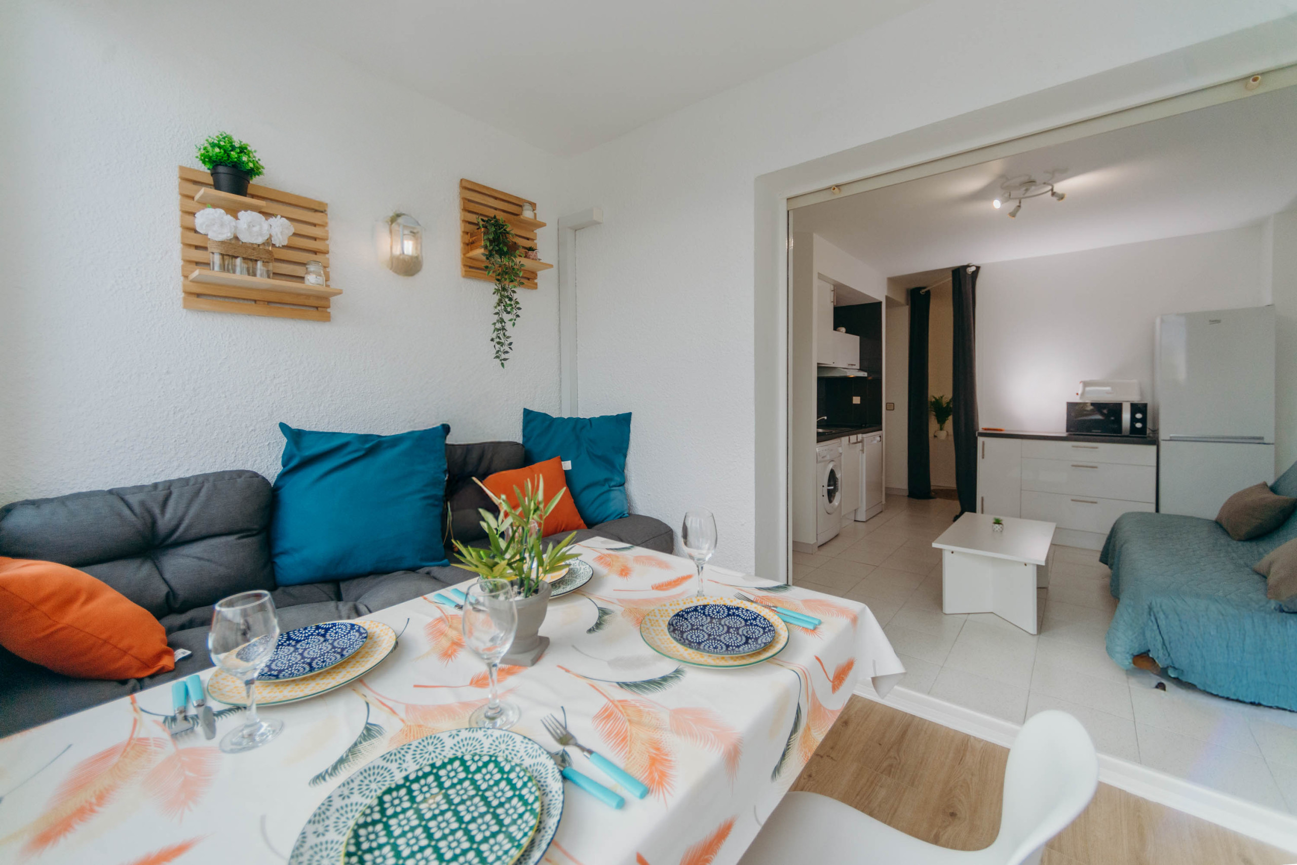 Apartamento en Empuriabrava para hasta 4 huéspedes, con 1 dormitorio, sofá cama en el salón y vista al canal. Dispone de aire acondicionado, lavadora, lavavajillas y cocina equipada, en una distribución práctica para una estancia cómoda.