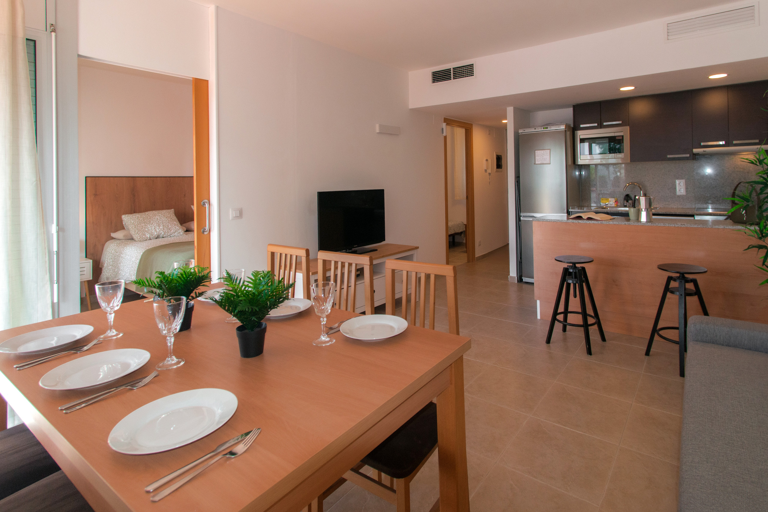 Apartamento amplio y cómodo, con salón-comedor, cocina equipada y baño completo. Perfecto para unas vacaciones en Roses, con piscina comunitaria para refrescarse en temporada y terraza para comer al aire libre.