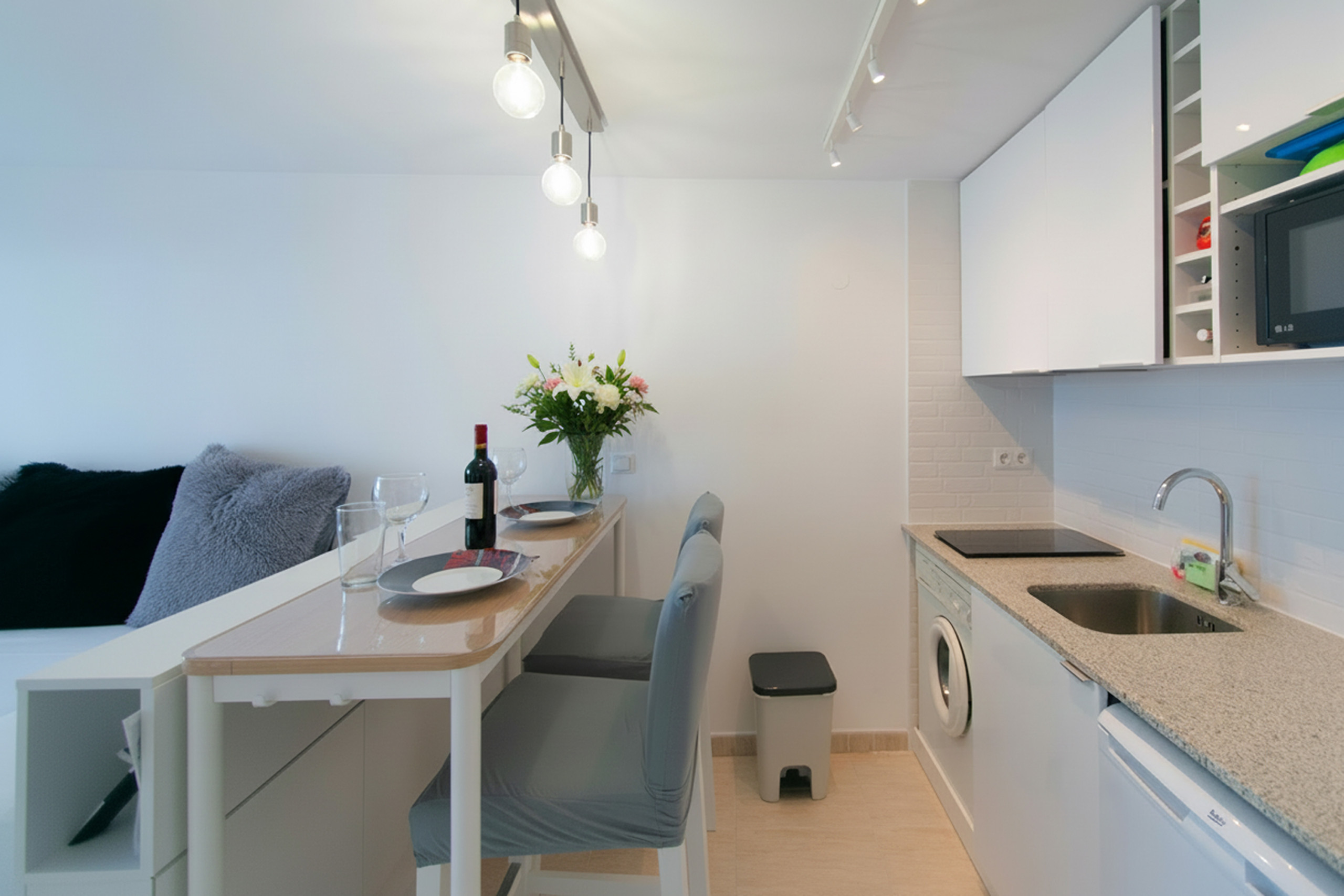 WiFi, lavadora, cocina equipada, microondas, cafetera, ropa de cama y toallas.