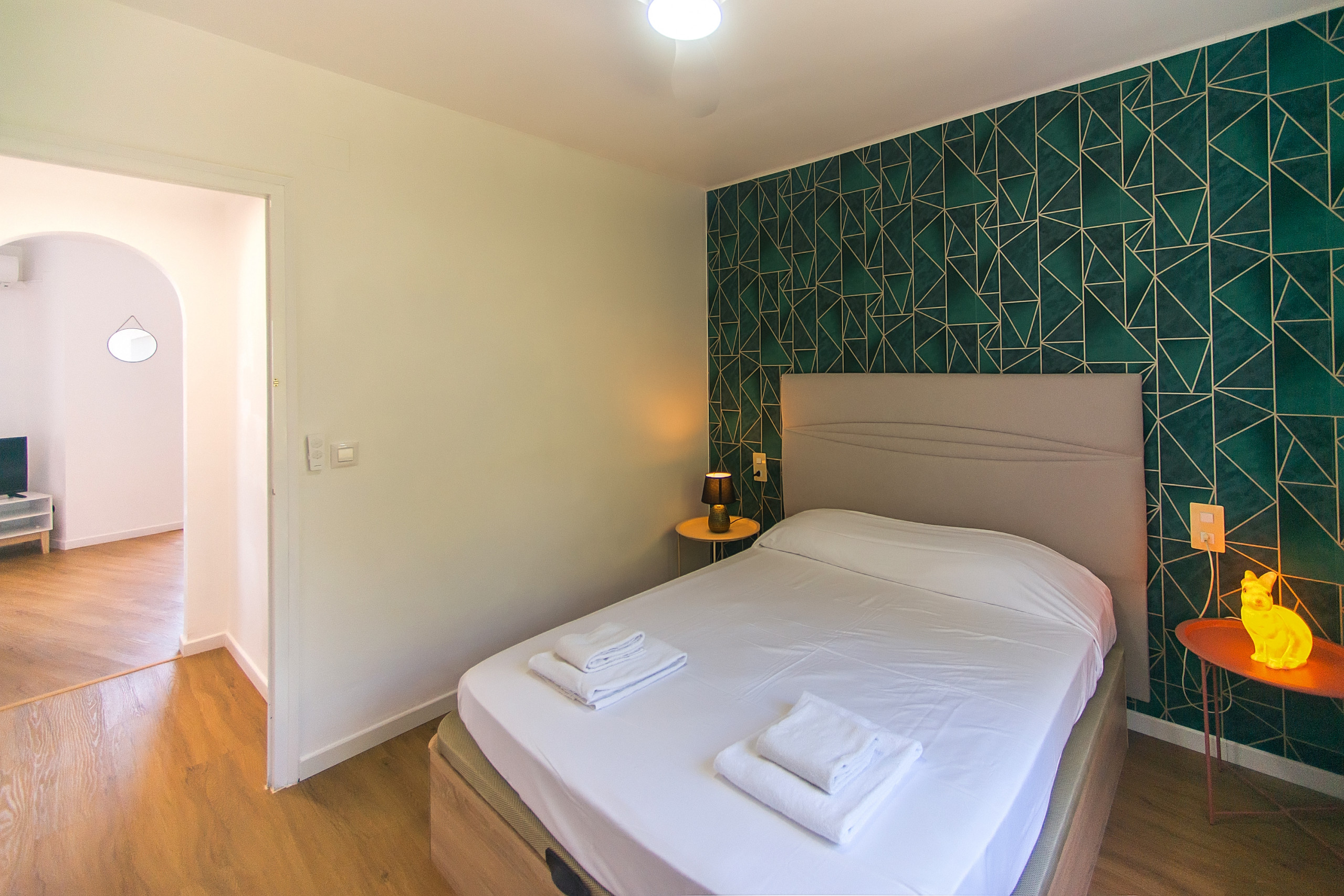 L'apartament inclou una còmoda zona de dormitori amb llit doble i mobles d'emmagatzematge, a més d'un modern bany totalment equipat.