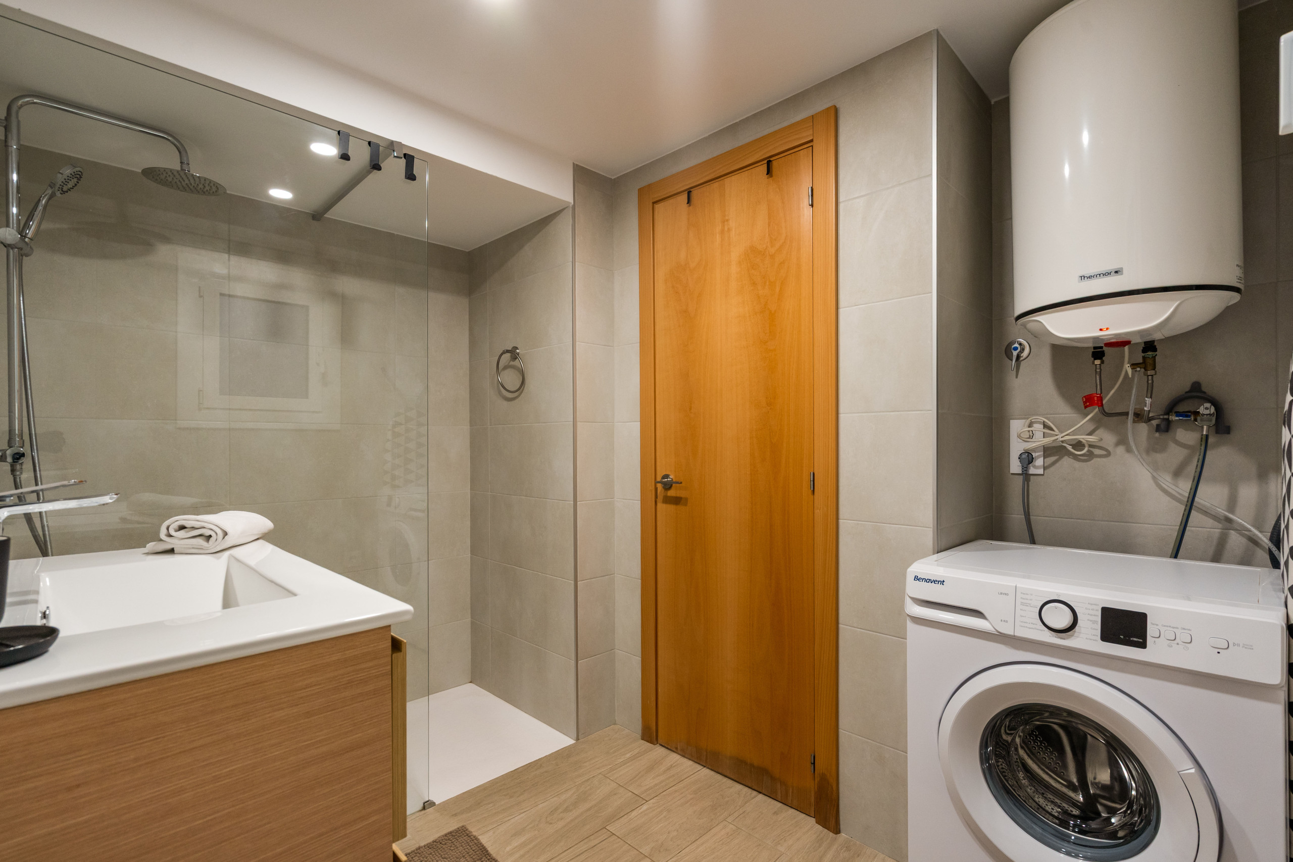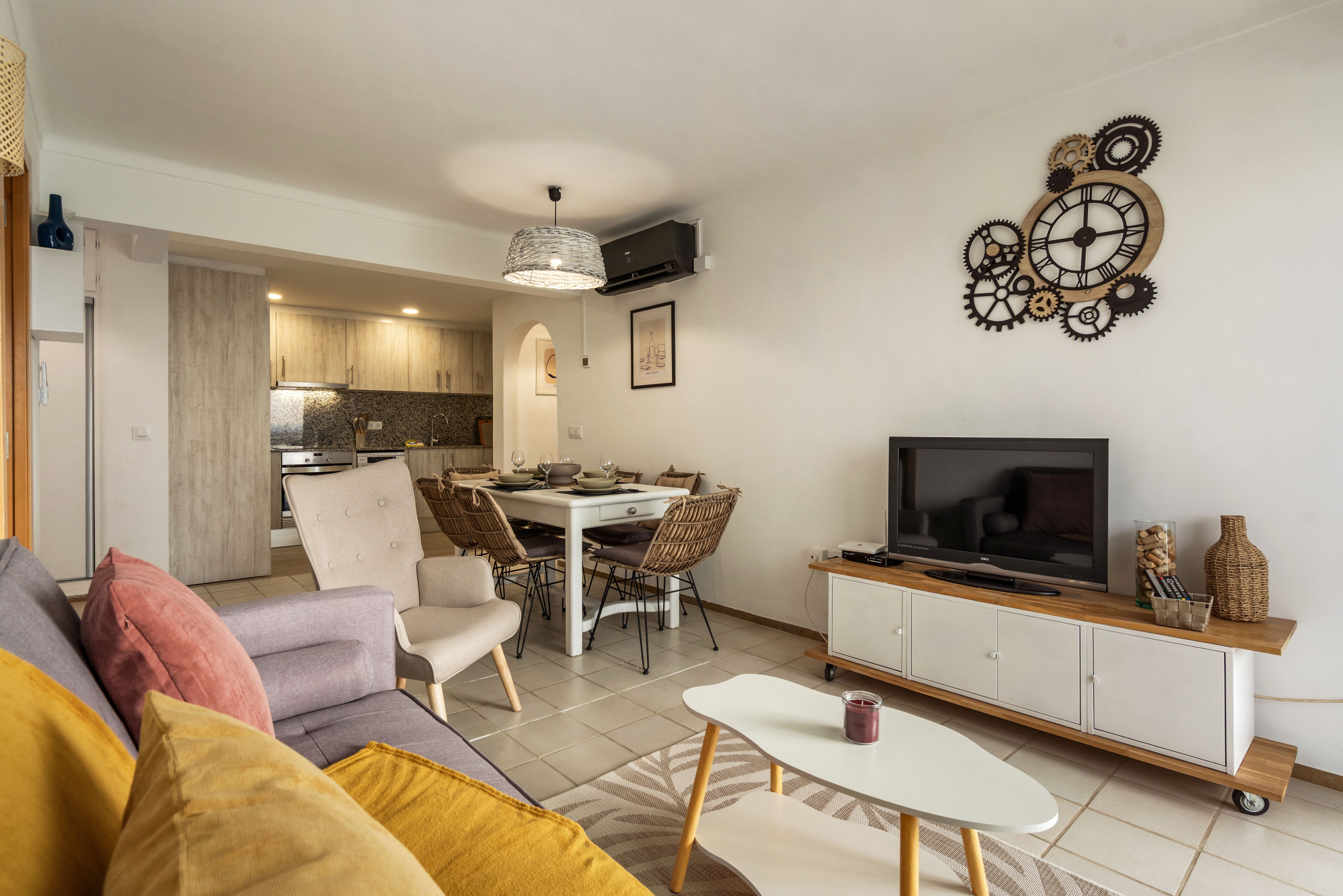 Aire condicionat, rentadora, rentaplats, cuina equipada, roba de llit i tovalloles.