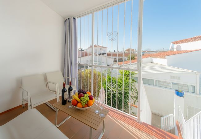 Apartament a Empuriabrava per a fins a 4 convidats, amb 1 dormitori, sofà llit al saló i vista al canal. Disposa d'aire condicionat, rentadora, rentavaixelles i cuina equipada, en una distribució pràctica per a una estada còmoda.