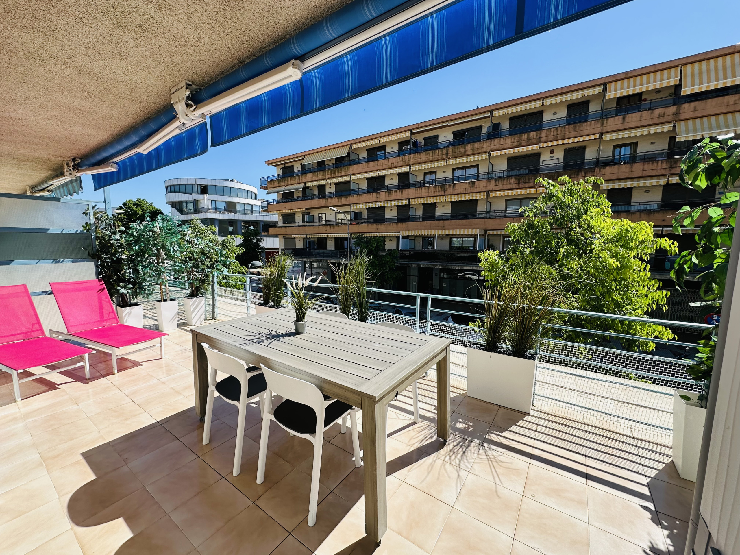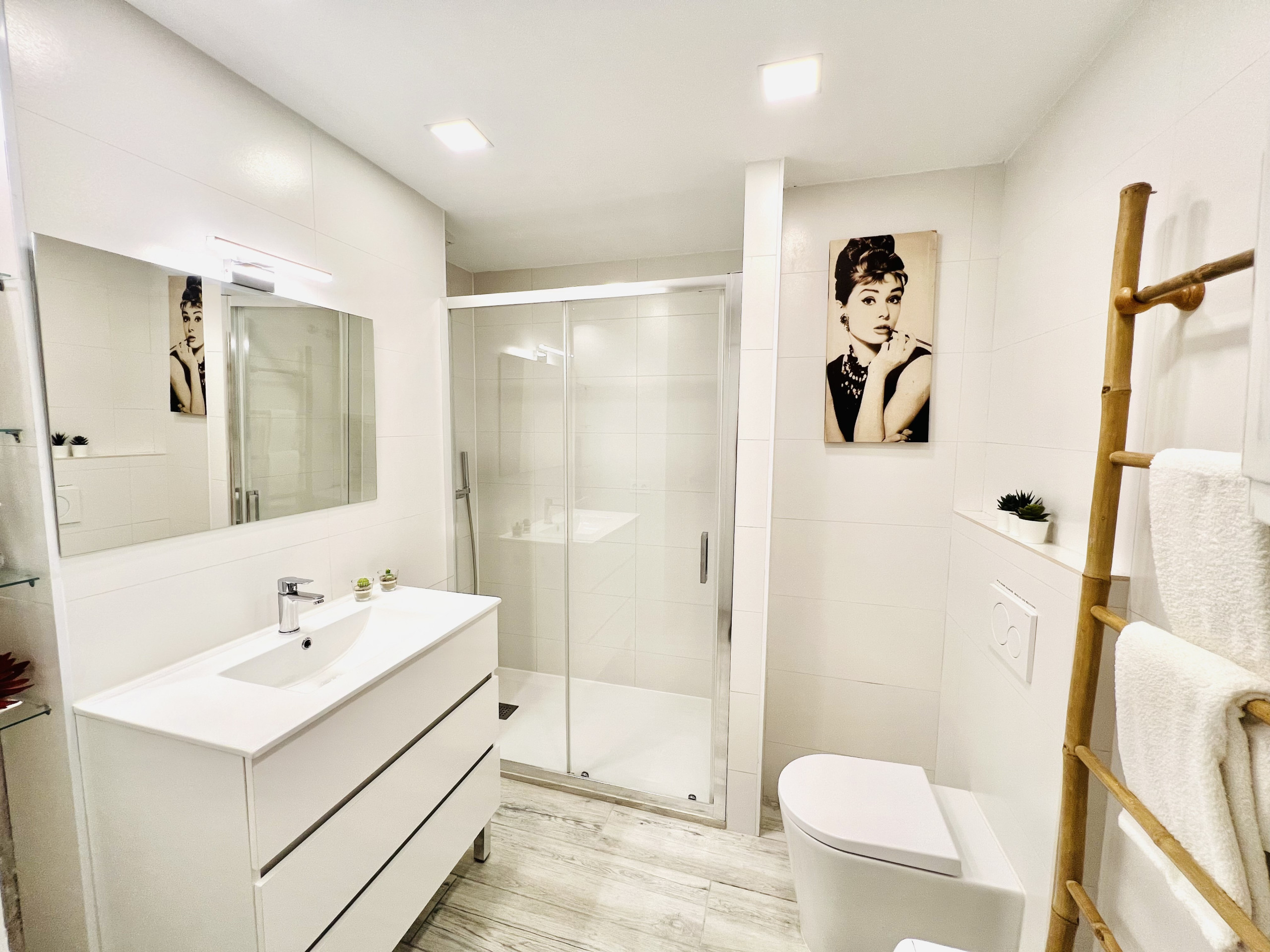 L'allotjament disposa d'un ampli saló-menjador amb sofà i televisió, creant un ambient perfecte per descansar després d'un dia de platja. Des d'aquí s'accedeix a una terrassa privada de 14 m², ideal per esmorzar al sol o gaudir d'un sopar a l'aire lliure amb vistes a la muntanya i la ciutat.