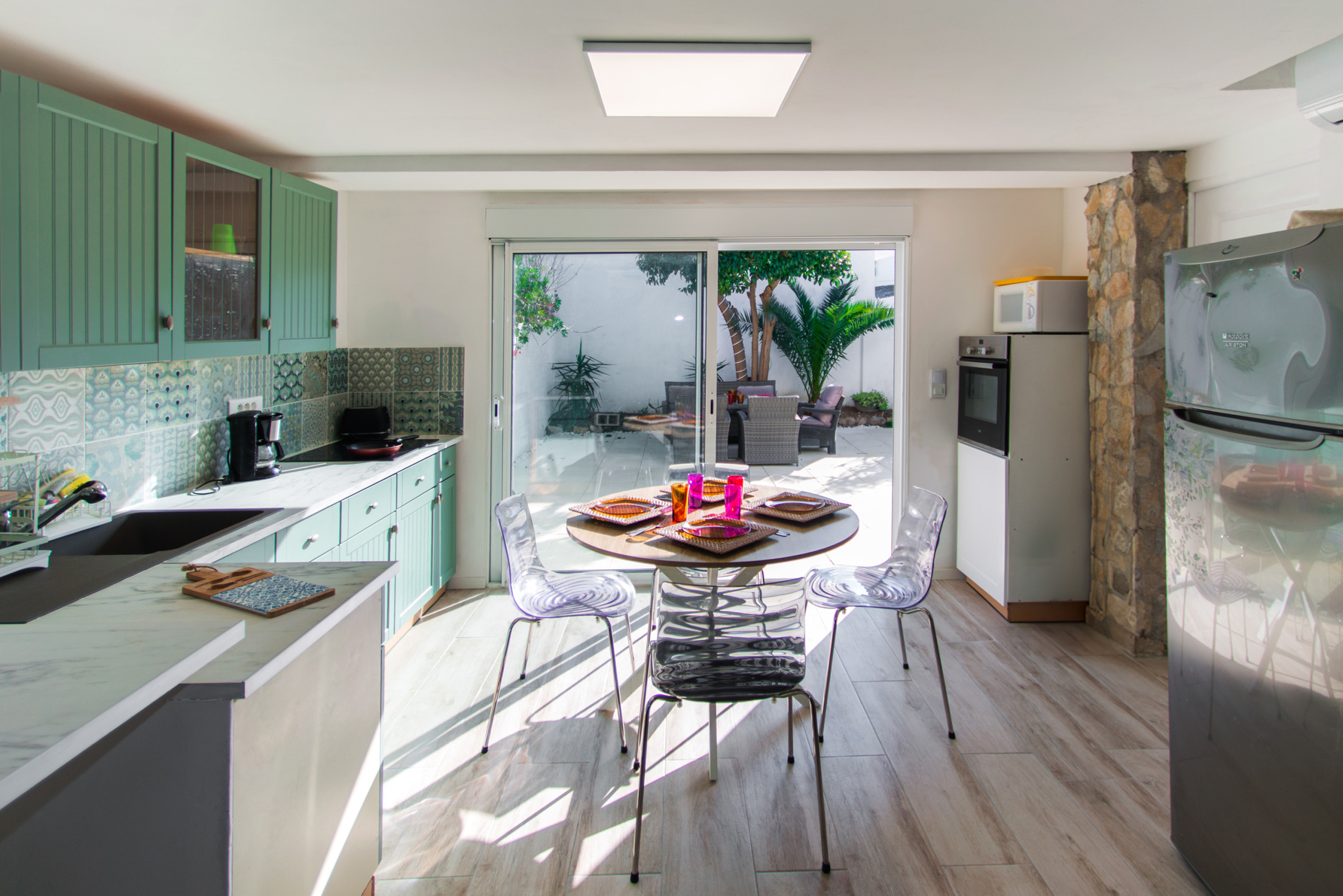 Casa còmoda i ben distribuïda, pensada per a estades a Empuriabrava amb espai exterior propi. Disposa de saló-menjador, cuina equipada, bany complet i un jardí privat perfecte per relaxar-se i menjar fora.