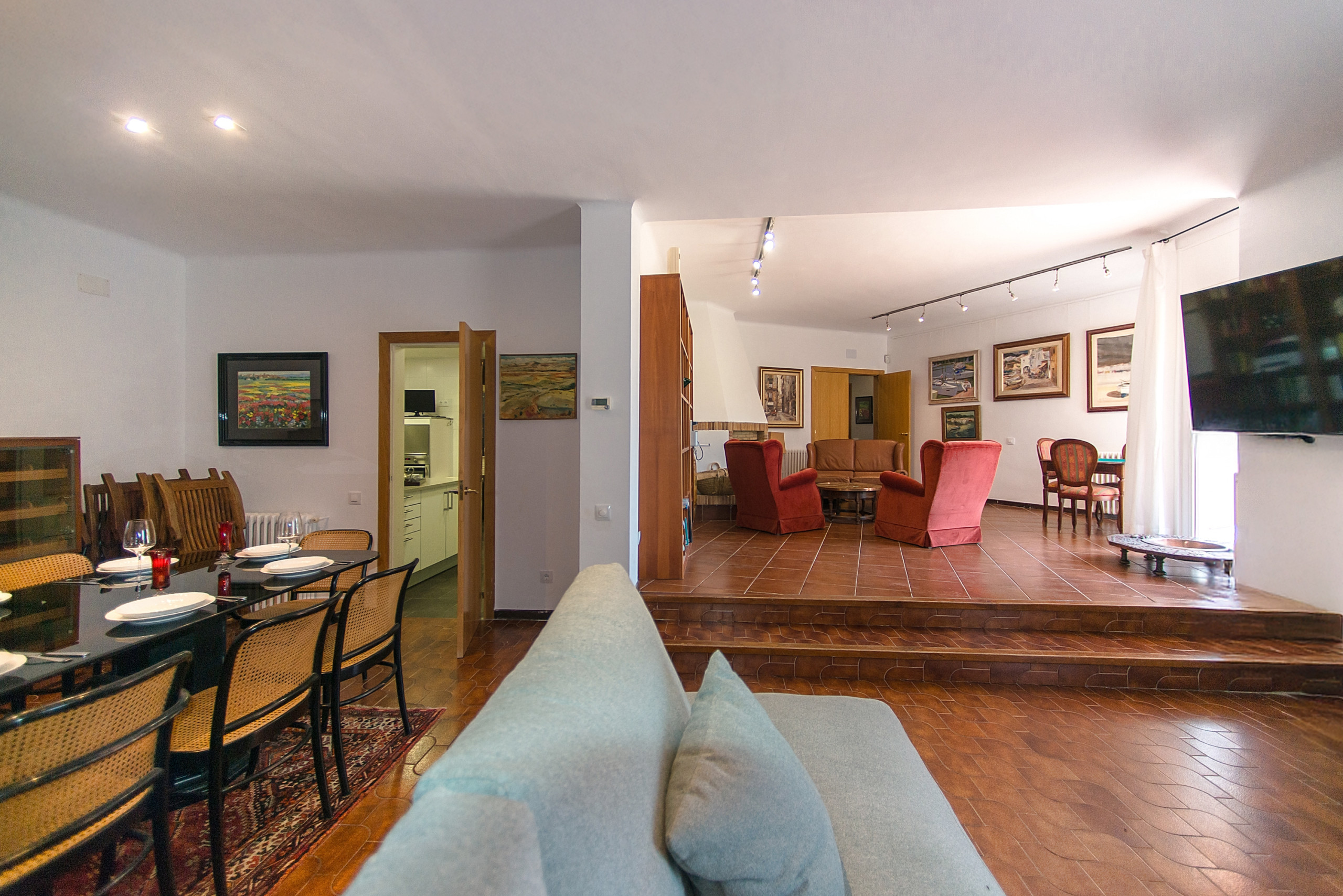 A primera vista, la casa impressiona per la seva àmplia sala d'estar, on regnen la comoditat i l'harmonia. Aquí es troba la zona de menjador, on es poden gaudir deliciosos plats en companyia de la família o amics, així com una zona de descans amb un sofà còmode i un televisor, que crea una atmosfera perfecta per relaxar-se després d'un dia atrafegat.