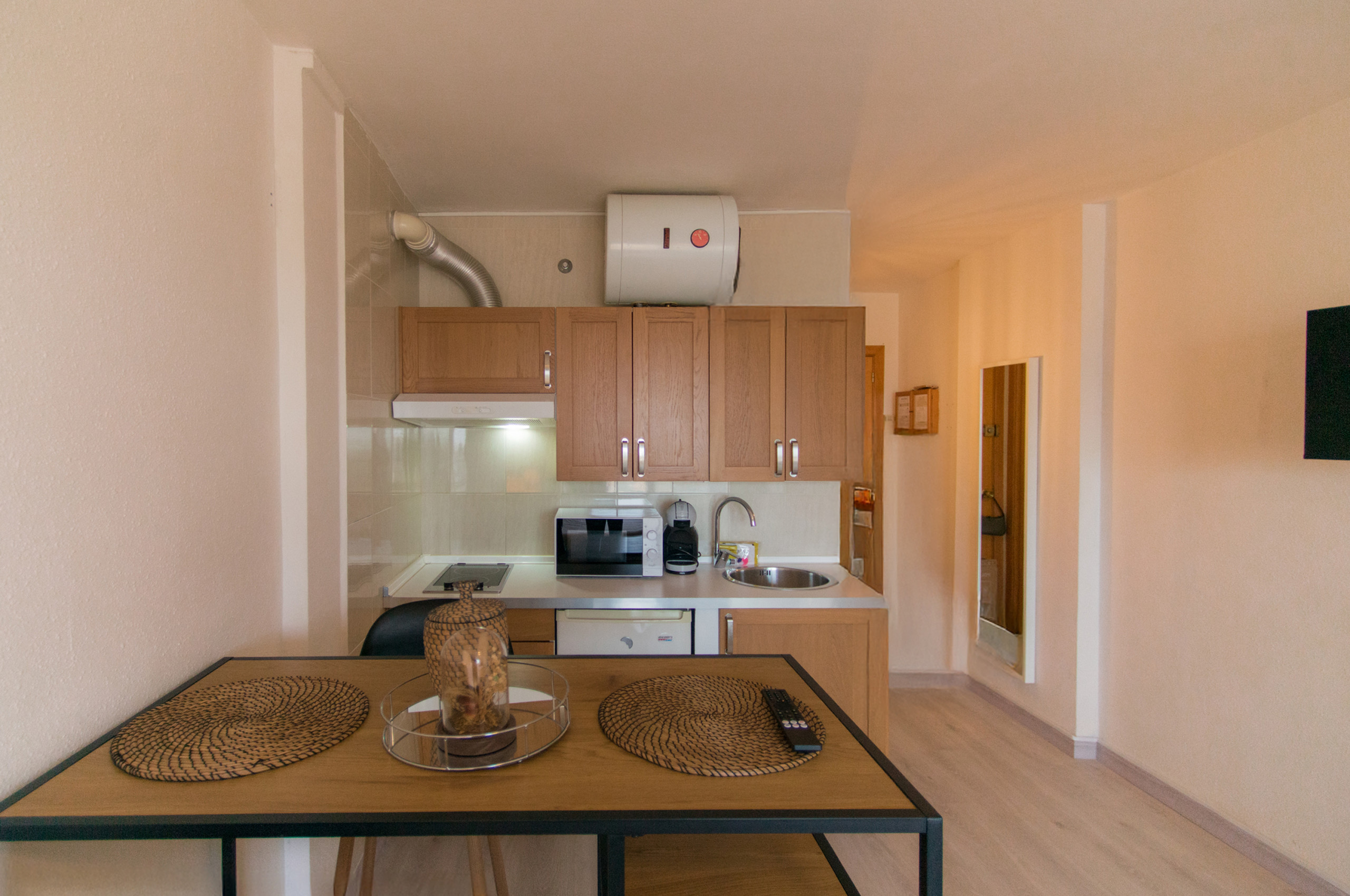 aquest estudi de 24 m², acollidor i modern, és ideal per a 2 persones i perfecte per a una escapada a la Costa Brava. La seva ubicació és excel·lent: a pocs metres de la platja i del centre, supermercats, restaurants i cafeteries, en una zona animada a prop del mar.