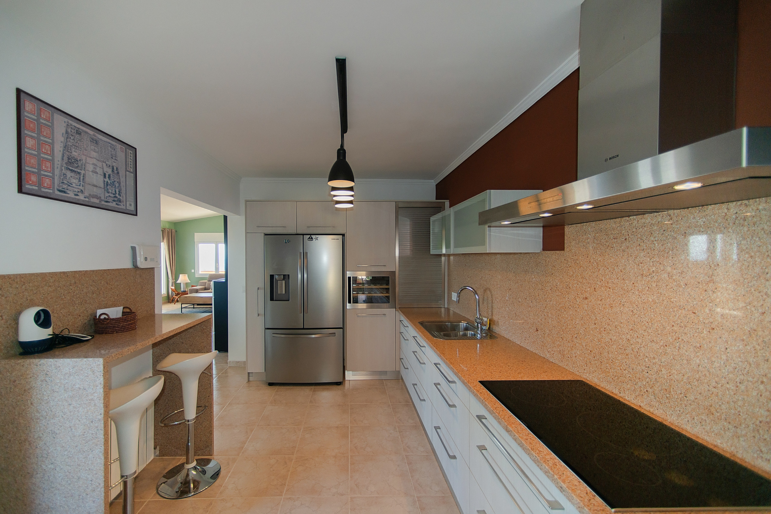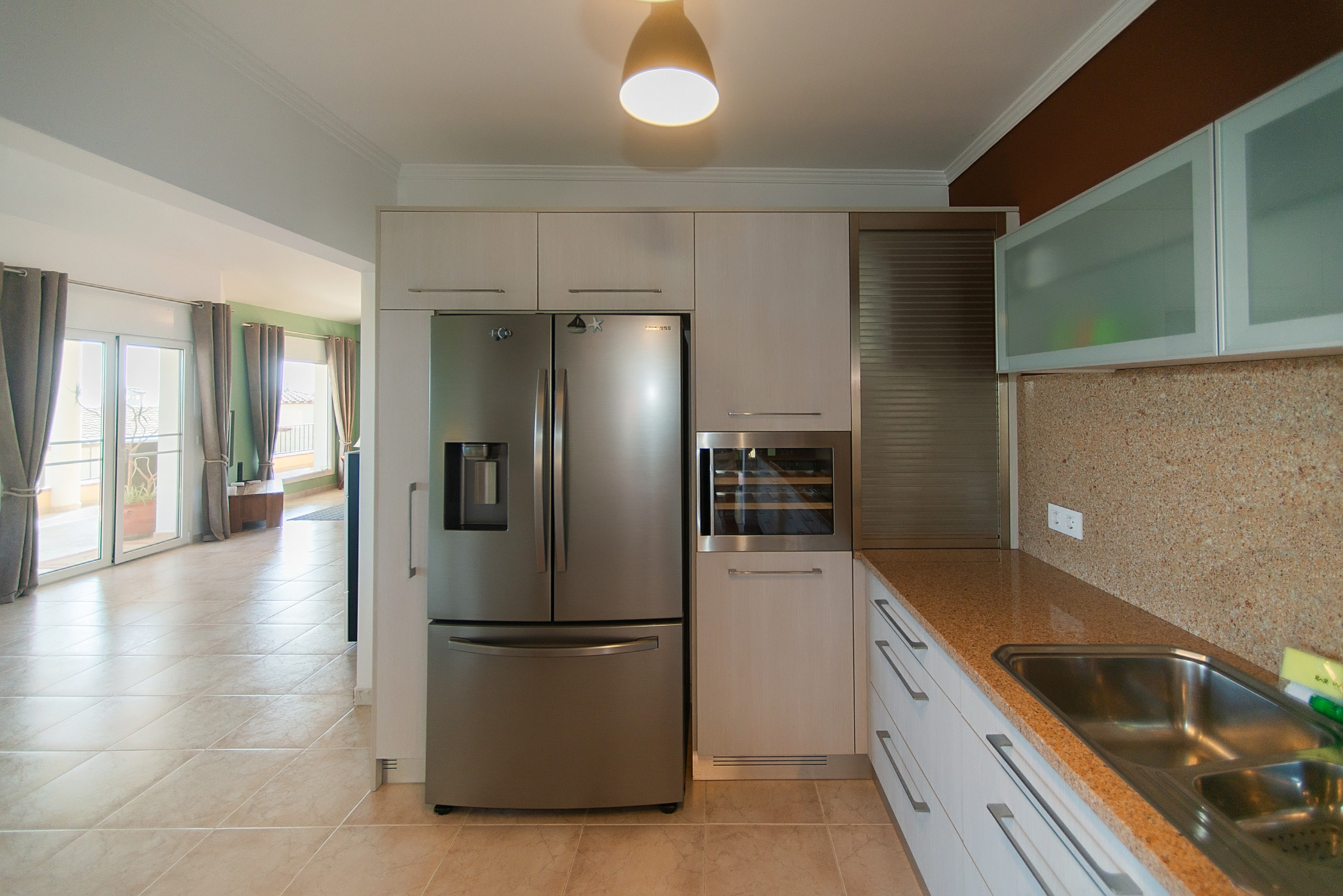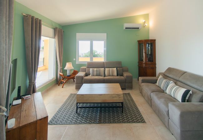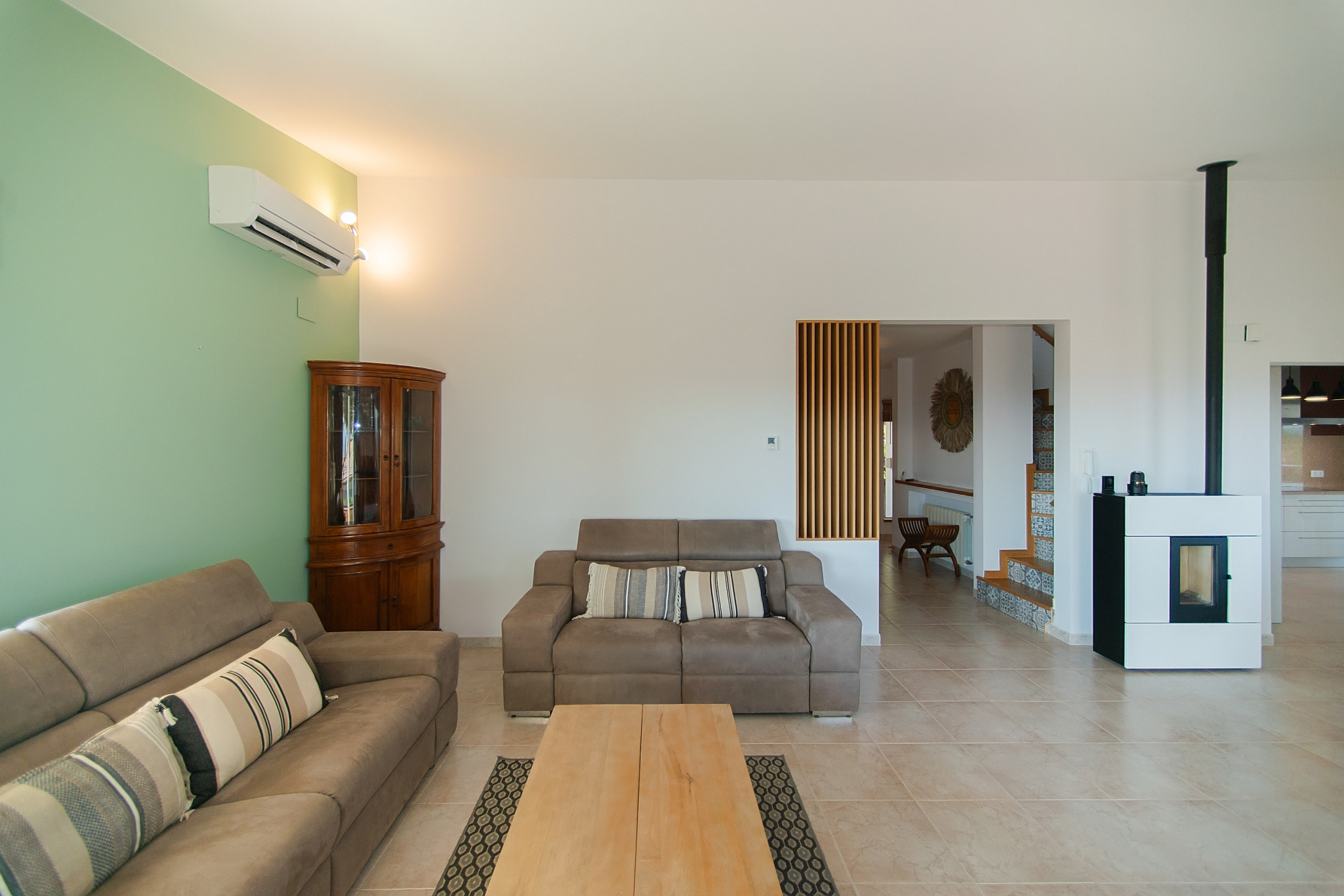 En creuar el llindar de la vila, et trobes en un espaiós saló on els sofàs tous, com núvols, t'inviten a estirar-te i gaudir de la fresca de l'aire condicionat, mentre que un gran televisor promet vetllades divertides en companyia de família i amics.