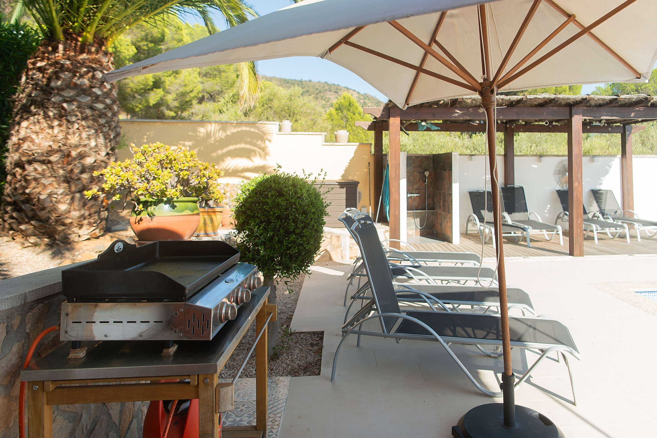 Al cor del pintoresc poble de Palau-Saverdera, còmodament ubicat al peu de les majestuoses muntanyes Sierra de Verdeara, a una altura de 78 metres sobre el nivell del mar, es troba una luxosa vila, com treta de les pàgines d'una revista d'estil de vida. Aquesta obra mestra arquitectònica de 240 m², envoltada d'un magnífic jardí i una piscina d'aigua turquesa, està a punt per rebre fins a deu hostes, prometent-los unes vacances inoblidables en un ambient de refinat luxe i comoditat.