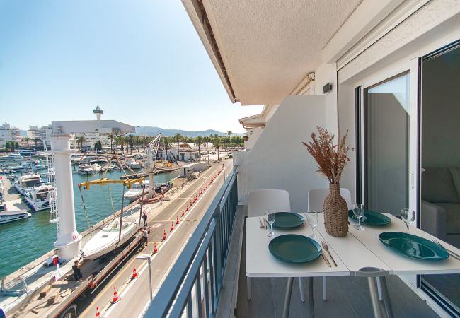Ein 40 m² großes Studio mit einer Terrasse, die einen herrlichen Blick auf das Meer bietet, befindet sich in der charmanten Kanalstadt Empuriabrava an der malerischen Küste der Costa Brava. Dies ist der ideale Ort für ein komfortables Wohnen für bis zu 4 Gäste, das Gemütlichkeit und Weite bietet.