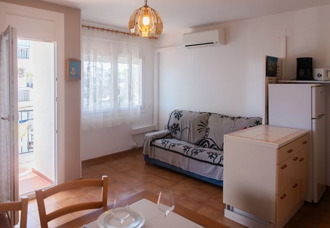 Eine 45 m² große Wohnung in der malerischen Stadt Empuriabrava, bekannt für ihre Kanäle, bietet komfortables Wohnen für vier Gäste. Diese Wohnung mit zwei Schlafzimmern und einer Terrasse mit Blick auf den Kanal ist der ideale Ort, um sich zu erholen und die Schönheit der Umgebung zu genießen.