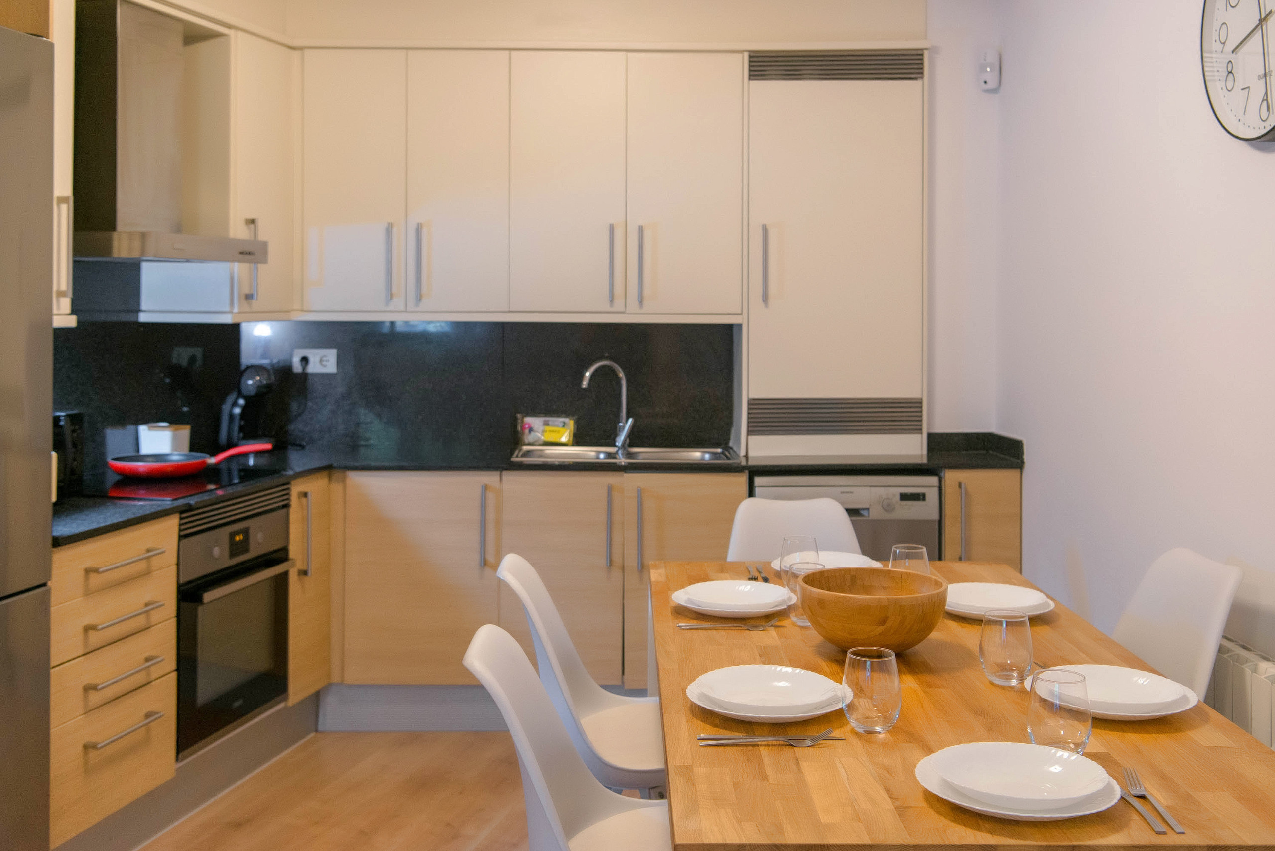 Die Küche ist komplett ausgestattet mit allem Notwendigen: Kühlschrank, Backofen, Mikrowelle, Geschirrspüler, Kaffeemaschine, Toaster und Küchenutensilien, ideal zum Zubereiten von Hausmannskost während des Aufenthalts.