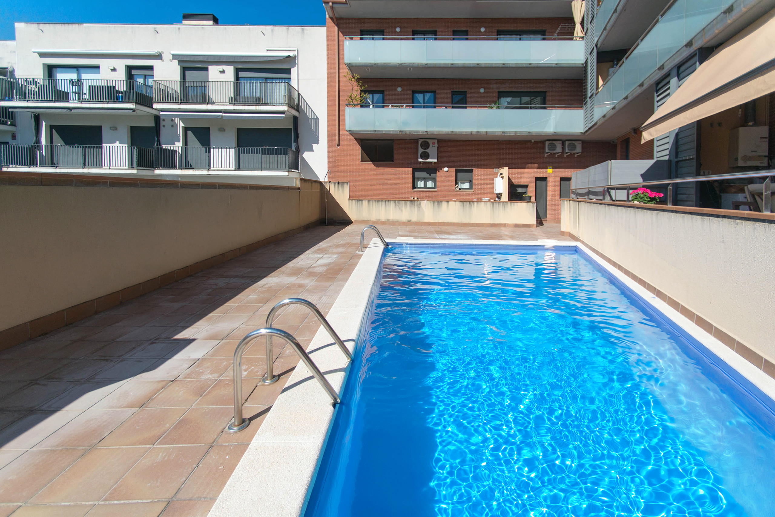 Zu den Annehmlichkeiten gehören Klimaanlage, Zentralheizung, kostenloses WLAN, Waschmaschine, Außenparkplatz und Gemeinschaftspool, perfekt zum Abkühlen an sonnigen Tagen.