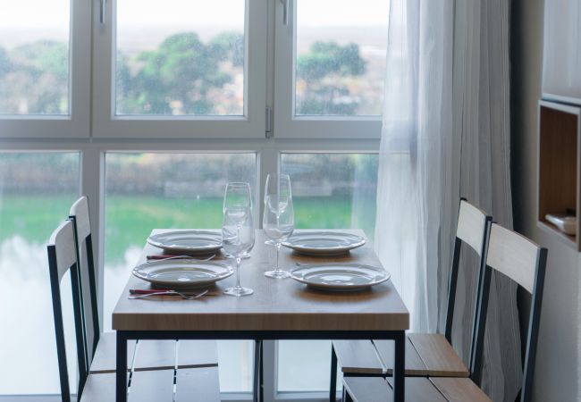 Dieses komplett renovierte Studio für 2 Personen ist eine ideale Wohnung, um die berühmte Stadt Empuriabrava kennenzulernen und zu genießen. Es befindet sich im 7. Stock der ersten Strandlinie und bietet einen unschlagbaren Blick. Auf der Terrasse finden Sie Tisch und Stühle, um ein Abendessen am Meer zu genießen und sich am Meer zu sonnen, ohne die Wohnung zu verlassen. Die Wohnung verfügt über ein Wohn-Esszimmer mit Stühlen und einem Tisch. Die Küche ist mit allem ausgestattet, was Sie brauchen, um Gerichte für jeden Geschmack zuzubereiten.