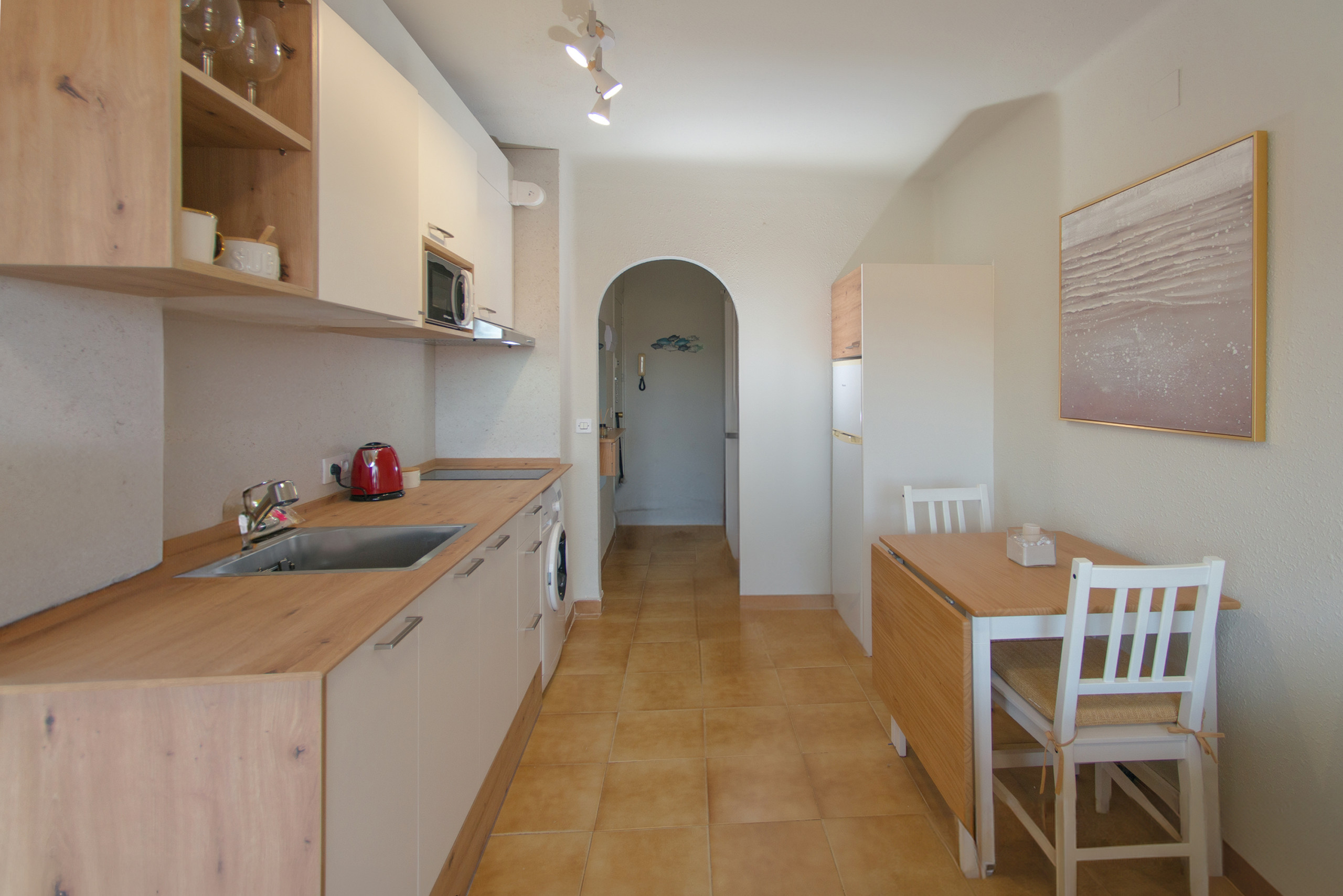 Heller und funktionaler Studienraum in Empuriabrava für bis zu 4 Personen, nur 100 m vom Strand entfernt. Verfügt über ein Doppelbett, ein Schlafsofa, eine voll ausgestattete offene Küche, ein vollständiges Badezimmer mit Dusche und einen Balkon mit Tisch und Stühlen mit Blick auf die Stadt. Inklusive WLAN, Waschmaschine und Klimaanlage Kalt/Warm. Eine praktische Option, um das Meer, Restaurants und Dienstleistungen in wenigen Gehminuten zu genießen.