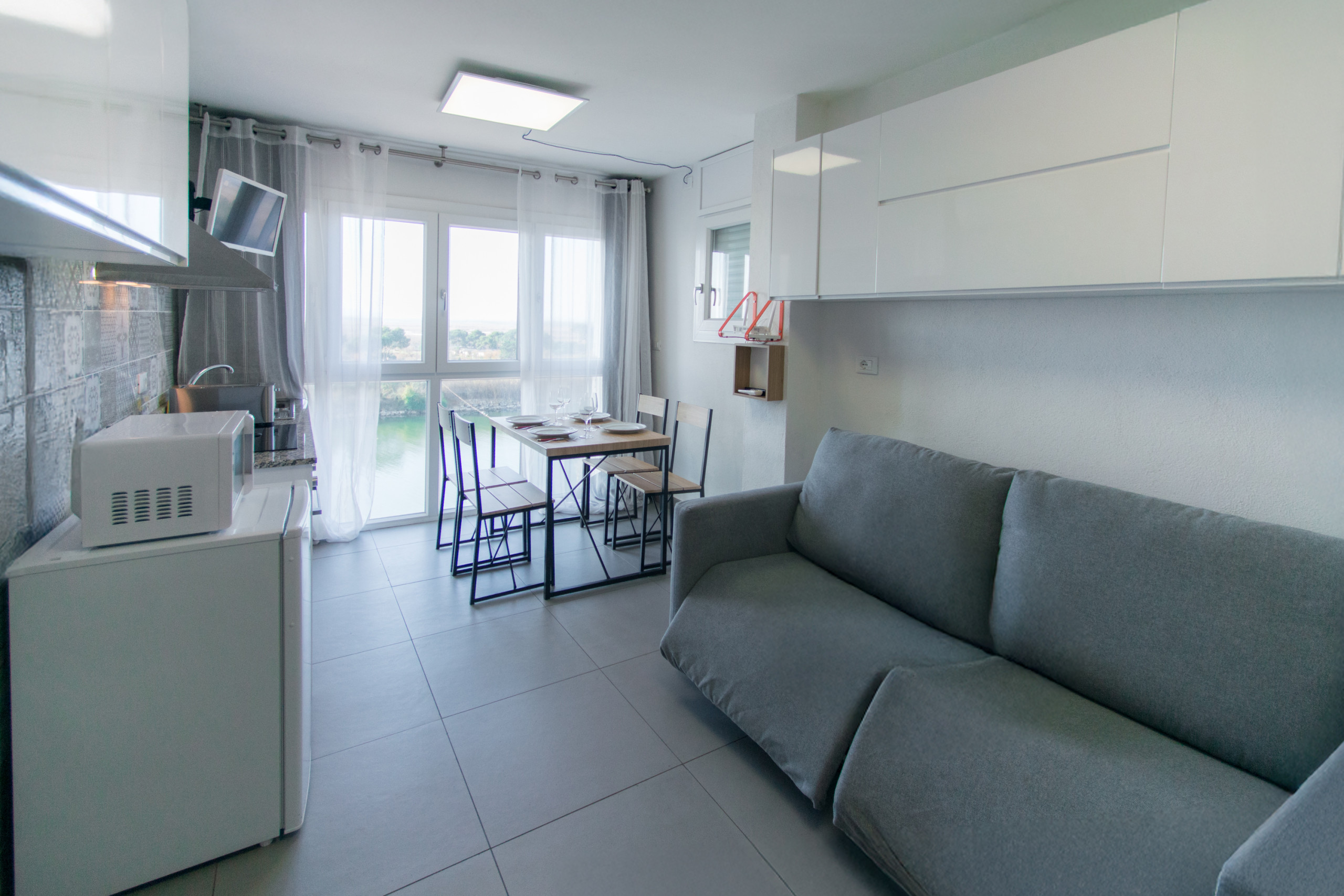 This flat with capacity for 2 guests, is an ideal flat to get to know and enjoy the famous town of Empuriabrava. The flat has a living-dining room and a terrace. The kitchen is equipped with ceramic hob, fridge and microwave.