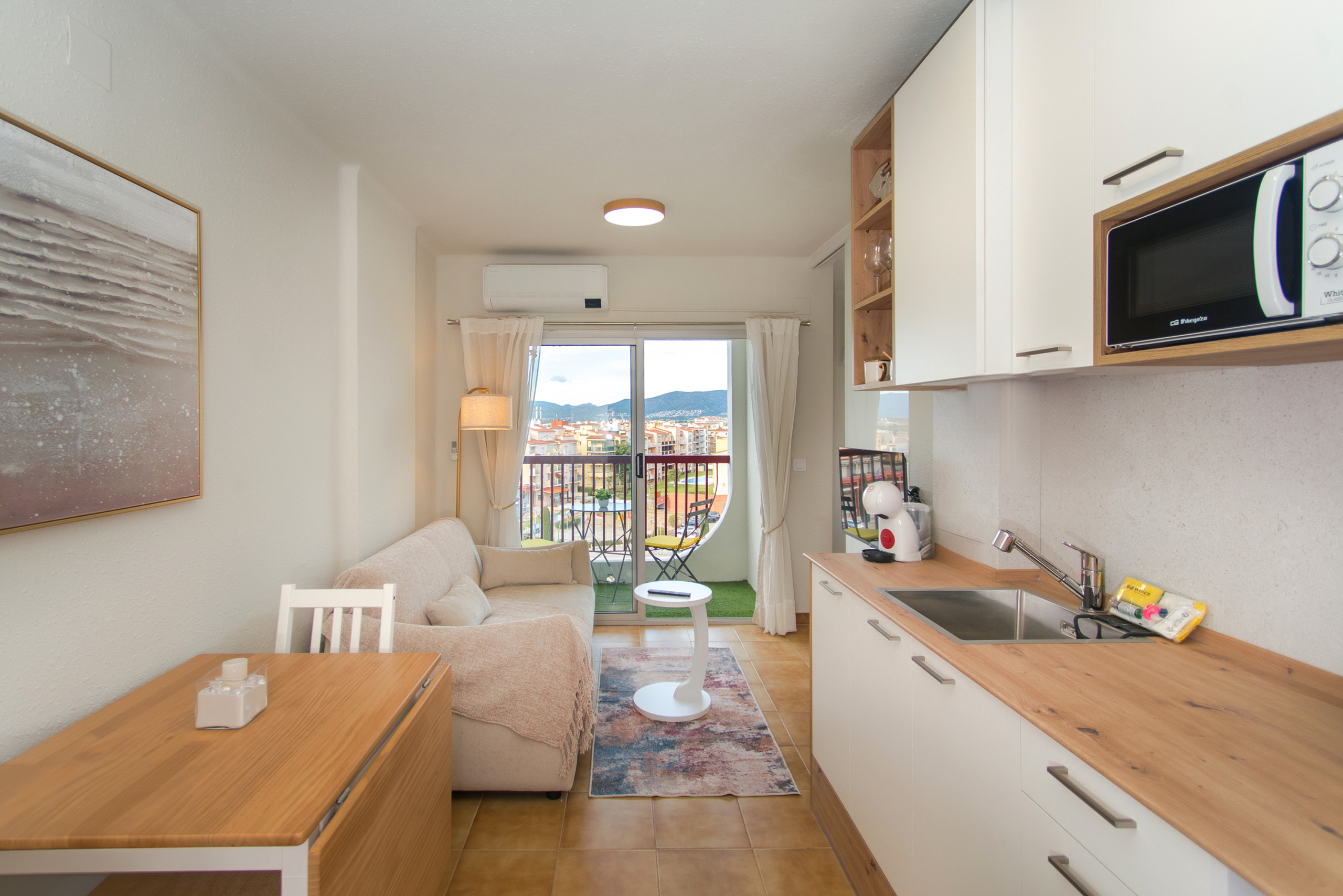 Bright and functional studio in Empuriabrava for up to 4 people, located just 100 m from the beach. It features a double bed, double sofa bed, fully equipped open-plan kitchen, complete bathroom with shower and balcony with table and chairs with city views. Includes WiFi, washing machine and hot/cold air conditioning. A practical option to enjoy the sea, restaurants and services within walking distance.