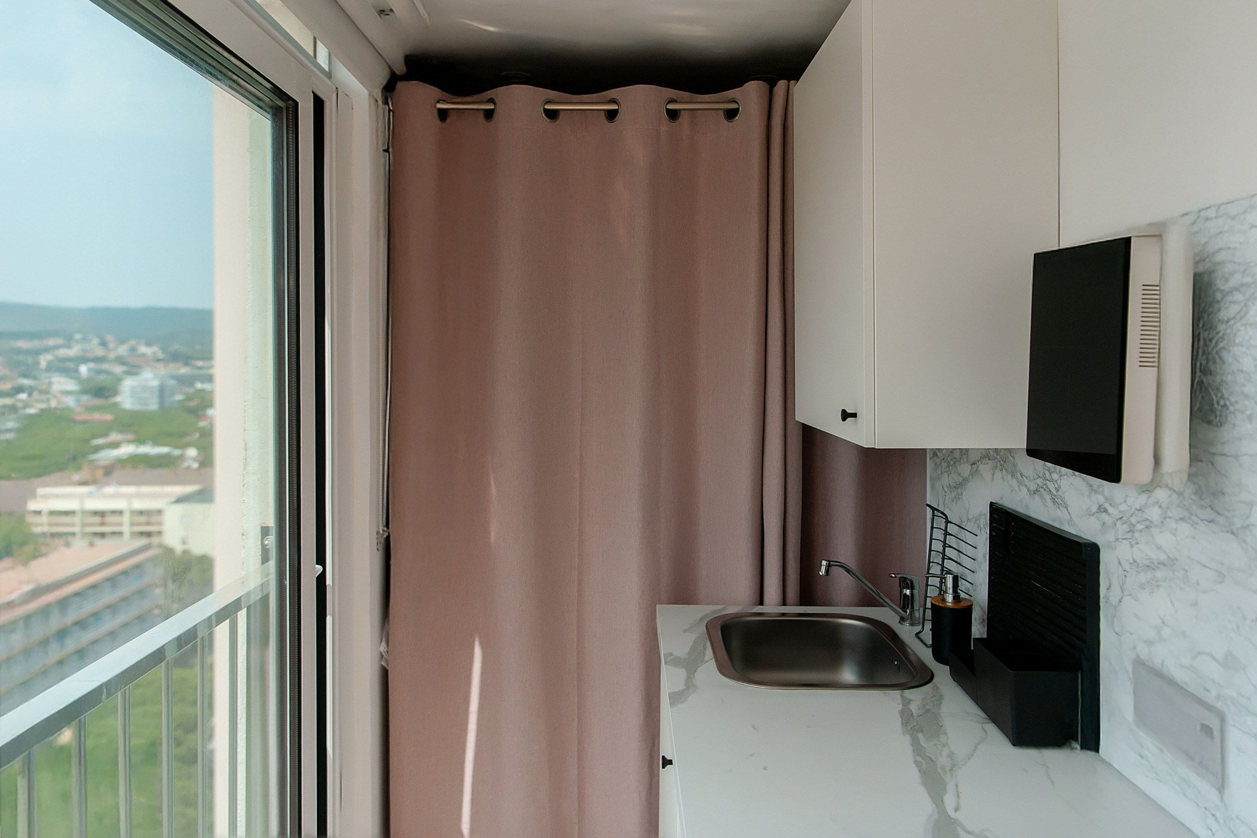 Bright studio for 2 people in Platja d'Aro, with sea views and a practical layout for a comfortable stay. It features a double bed, dining area, fully equipped kitchen, and complete bathroom. Includes WiFi and washing machine, ideal for seaside getaways.