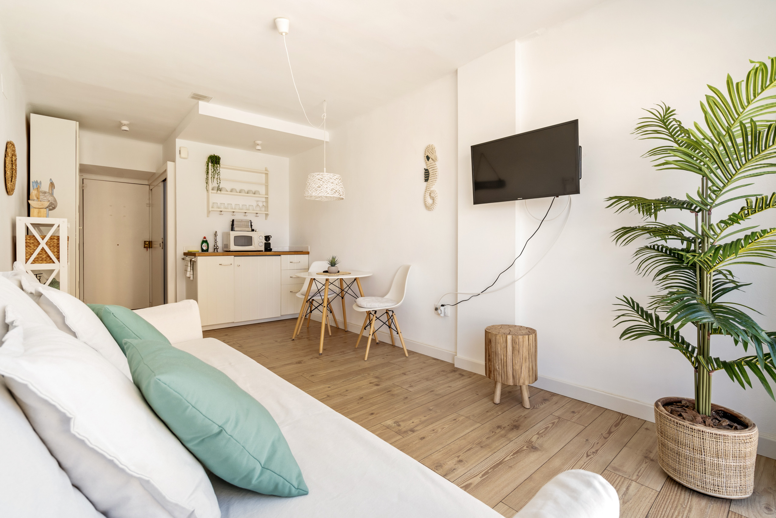 Bienvenue dans l'incroyable ville d'Empuriabrava, où nous proposons en location un appartement sur la Costa Brava, à quelques pas de la plage. Cet appartement de 30 m² peut accueillir 2 personnes et comprend une zone de cuisine entièrement équipée (réfrigérateur, cuisinière, cafetière) et un salon confortable avec canapé et table à manger. Le salon dispose d'une Smart TV et de la climatisation, ainsi que d'une salle de bain complète.