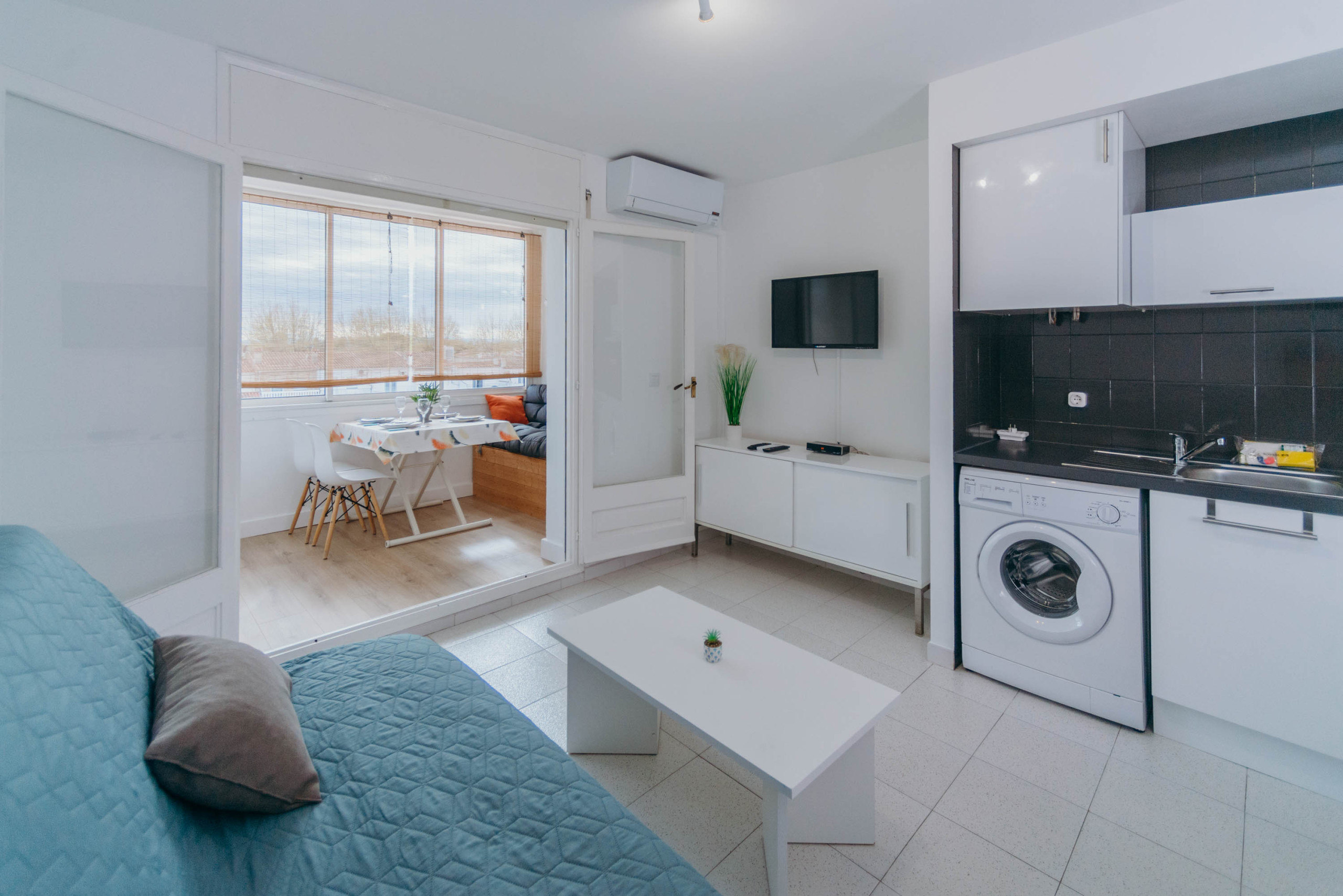 Cet élégant studio, qui peut accueillir jusqu'à 2 personnes, est un appartement idéal pour connaître et apprécier la célèbre ville d'Empuriabrava. Il est situé en première ligne de la plage et offre une vue sur la mer depuis la terrasse et le lit. Sur la terrasse, vous trouverez des tables et des chaises pour profiter d'un dîner en face de la mer. La cuisine ouverte est équipée d'un réfrigérateur, d'un four à micro-ondes, d'un lave-linge, de vaisselle, d'ustensiles de cuisine, d'une cafetière, d'un grille-pain et d'une bouilloire. Plus loin, vous trouverez un lit double avec un matelas de haute qualité et un canapé-lit.