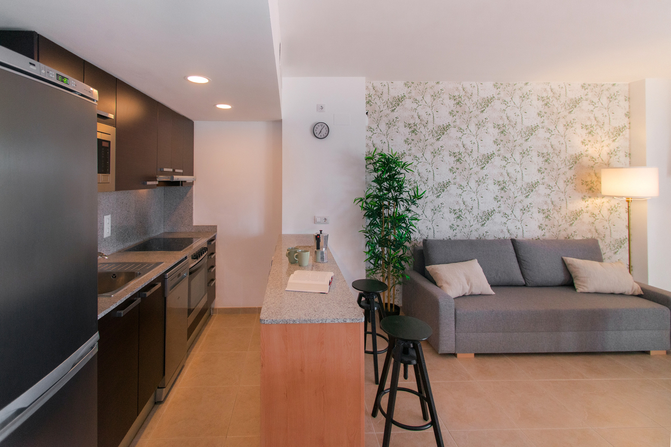 Une fois que vous aurez franchi le seuil, vous vous trouverez dans un salon lumineux et accueillant, où les meubles modernes et l'éclairage tamisé créent une atmosphère de confort et d'hospitalité. Ici, vous trouverez un canapé confortable et des éléments décoratifs élégants qui ajoutent un charme particulier à l'intérieur. Le salon s'ouvre en douceur sur la cuisine, équipée de tous les appareils électroménagers nécessaires pour vous permettre de préparer facilement vos plats préférés pour vos proches.