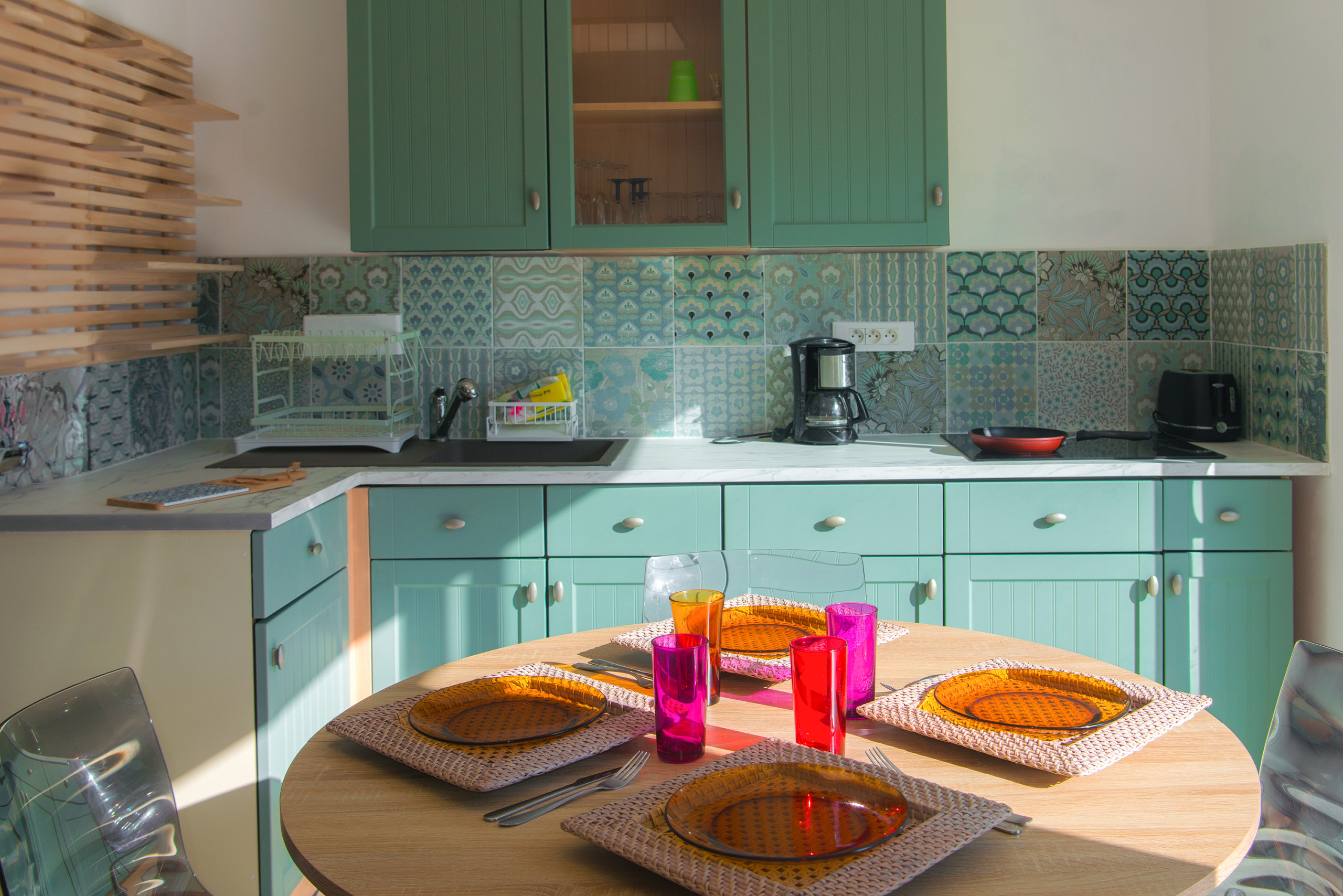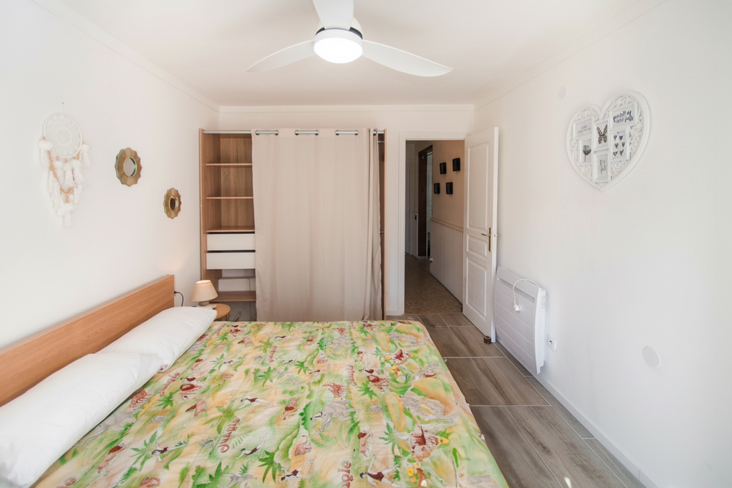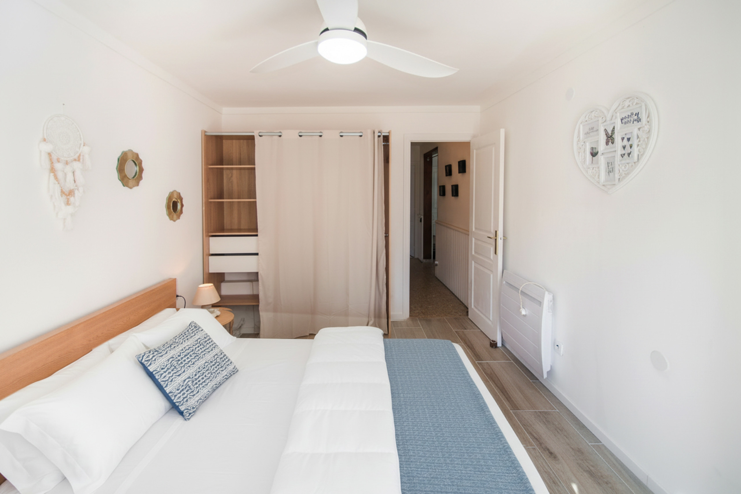 Climatisation, machine à laver, cuisine équipée, linge de lit et serviettes.