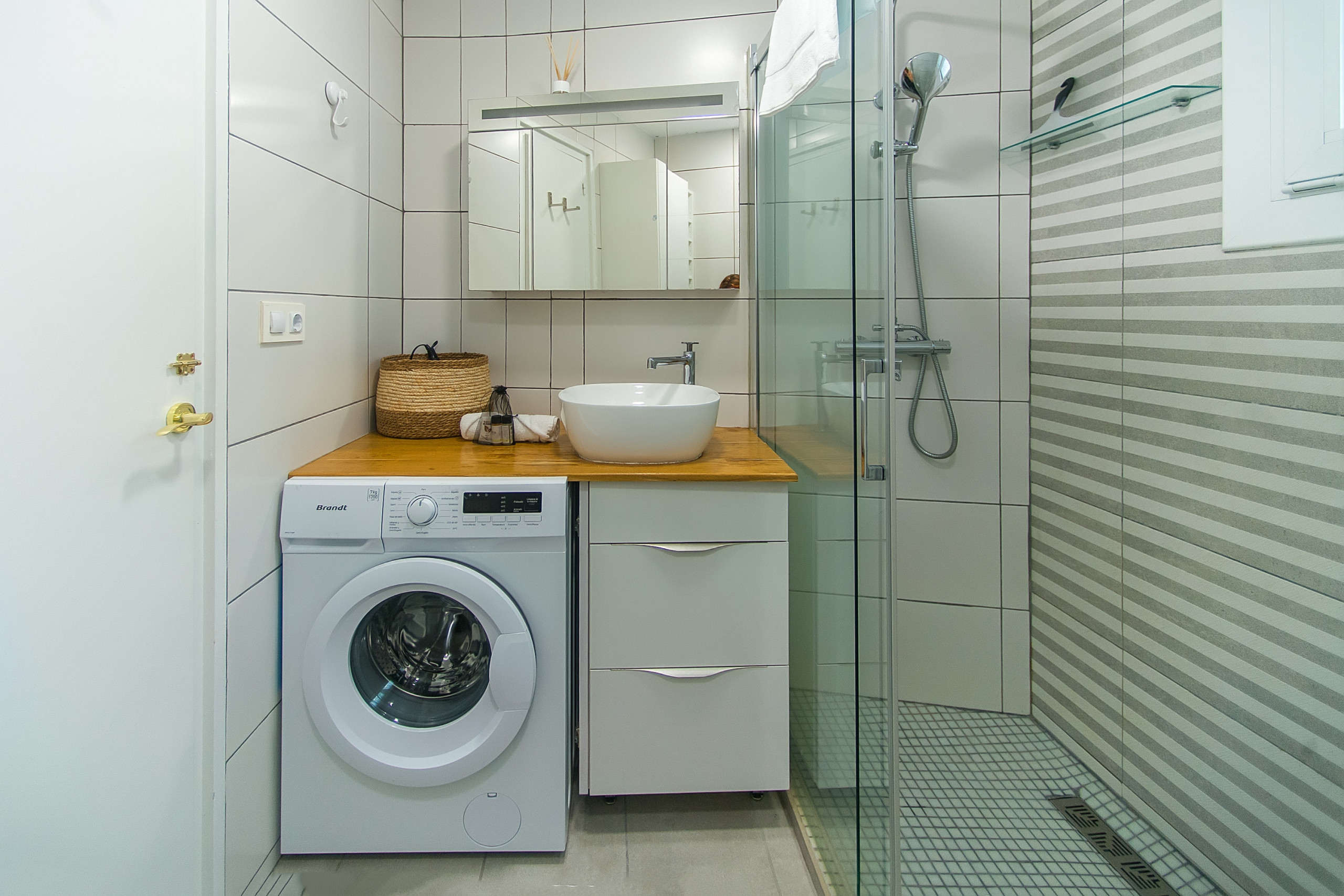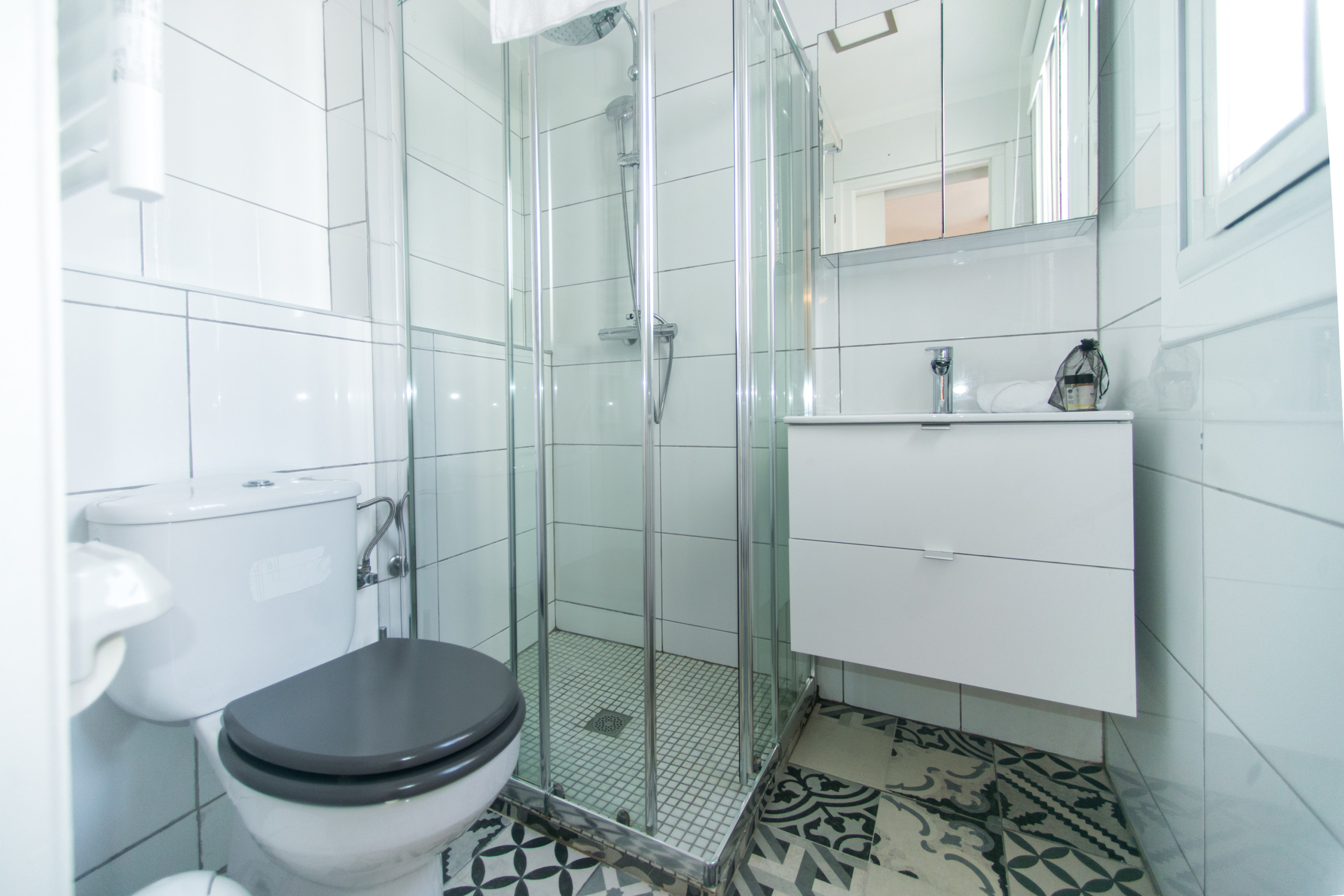 La salle de bain avec douche offre commodité et fonctionnalité, vous permettant de commencer la journée avec dynamisme ou de vous détendre après une longue journée à la plage.