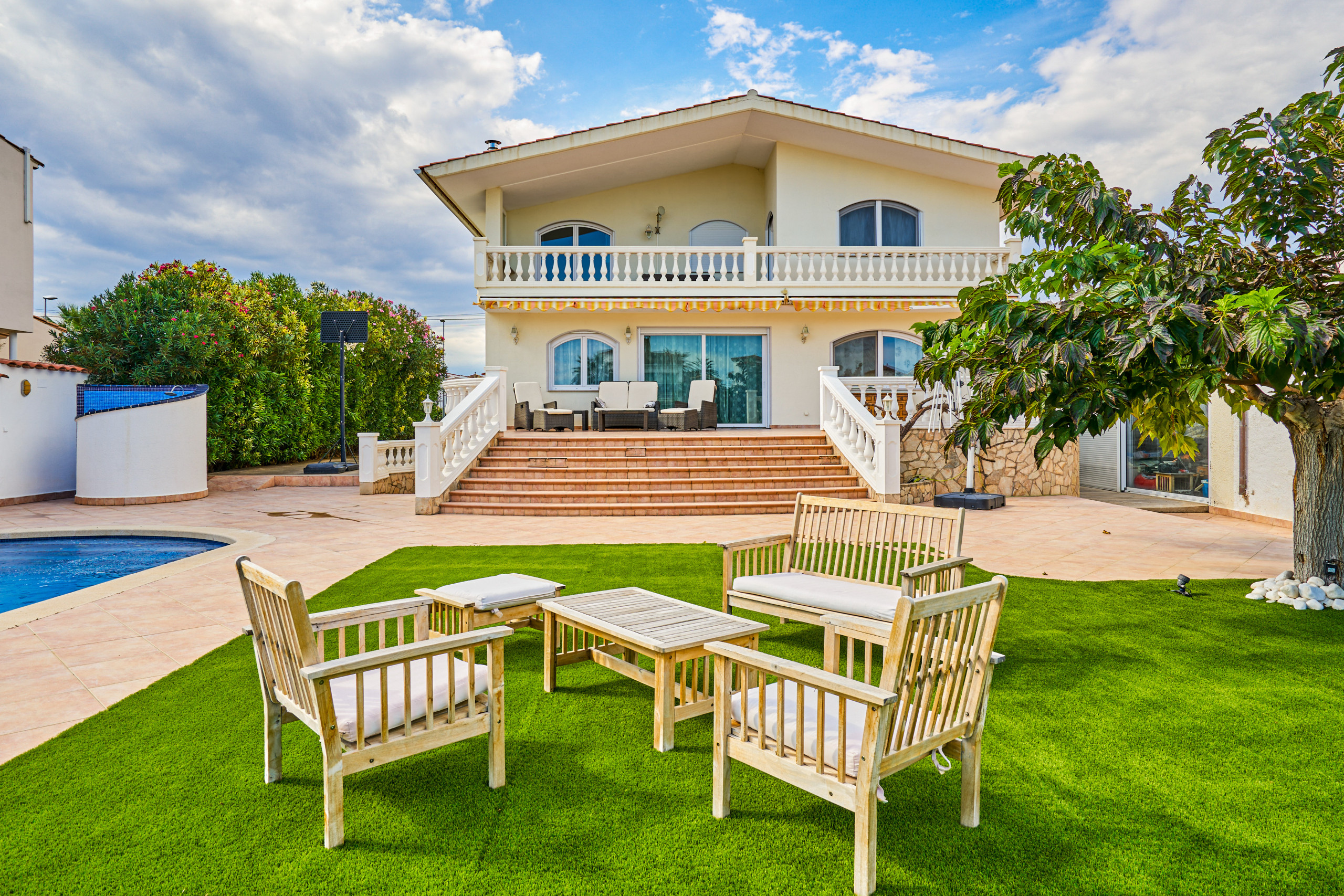 Villa spacieuse et confortable à Empuriabrava (187 m²), meublée avec goût et offrant une vue sur le jardin et la piscine. Idéale pour les familles ou les groupes qui recherchent de l'espace et une zone extérieure privée pour profiter de leur séjour.