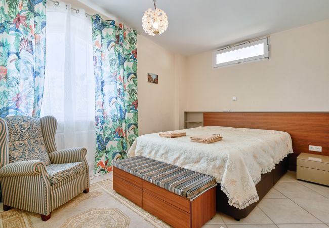 La maison dispose d'un grand jardin avec une piscine incroyable, des meubles de jardin et un barbecue au charbon. C'est l'endroit préféré des invités, où l'on peut bronzer sur l'un des transats ou se déconnecter de la civilisation avec tout le confort nécessaire.
