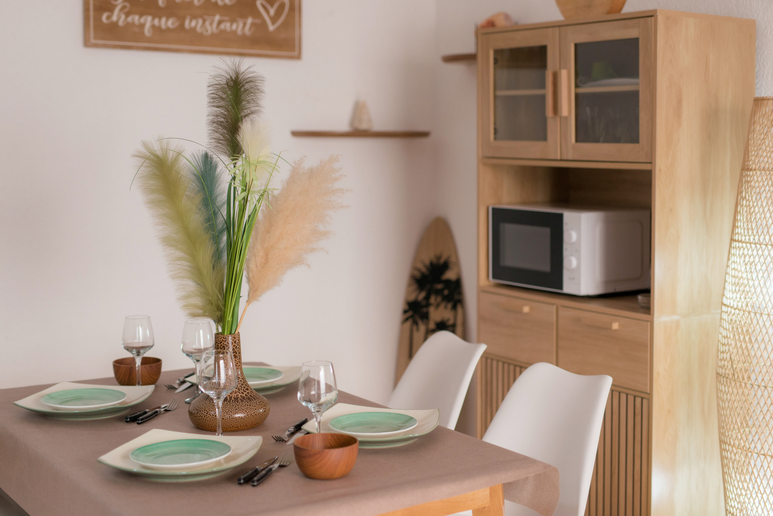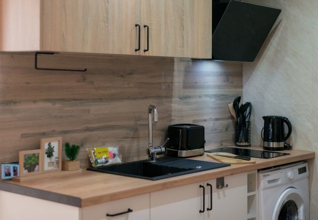 De open keuken, met keramisch fornuis, is uitgerust met koelkast, magnetron, oven, vriezer, vaatwasmachine, servies/bestek, keukengerei, koffiezetapparaat, broodrooster en waterkoker.