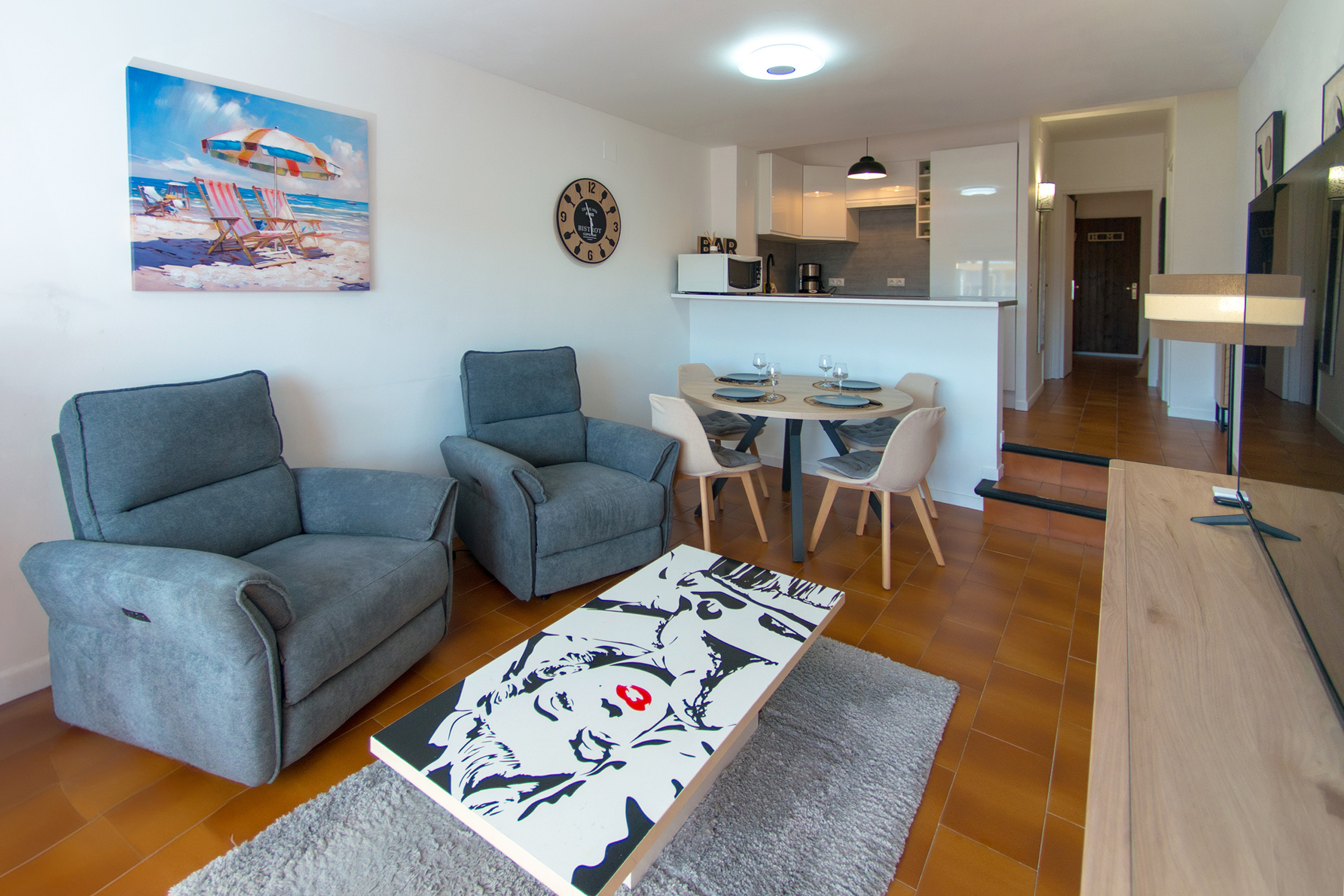 Het appartement in Empuriabrava heeft 2 slaapkamer(s) en kan gereserveerd worden tot 4 personen. Deze comfortabel ingerichte woning is goed belicht, De accommodatie heeft een oppervlakte van 50 m². Uw acommodatie ligt in een levendige omgeving en vlakbij winkels en restaurants. De woning bevindt zich op 10 m van het dorp, 20 m , 20 m , 170 m , 400 m van de supermarkt, 700 m van het zandstrand.Tevens heeft u de beschikking over 6 m² terras, Wasmachine, Warmtepomp, Airconditioning, Overdekte parkeerplaats in het zelfde gebouw, Televisie.De open keuken, met keramisch fornuis, is uitgerust met koelkast, vaatwasmachine, servies/bestek, keukengerei, koffiezetapparaat, broodrooster en waterkoker.