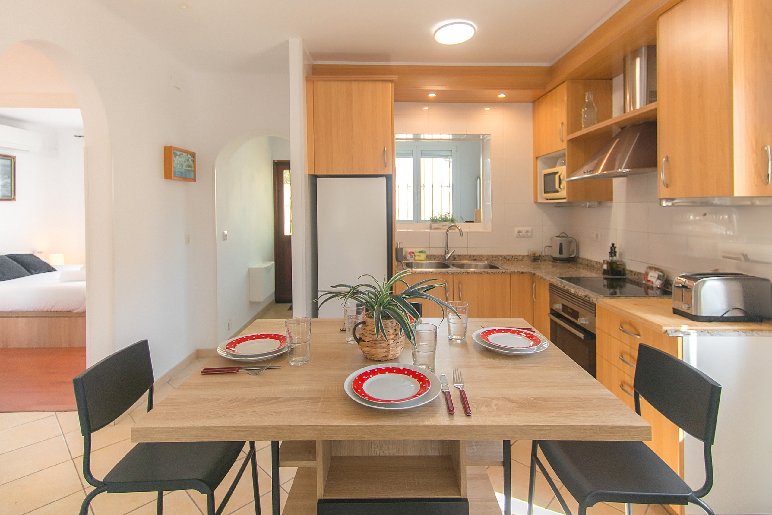 Tevens heeft u de beschikking over Tuin, Tuinmeubilair, Wasmachine, Strijkijzer, Internet (wifi), Haardroger, Alarm, Elektrische verwarming, Airconditioning, Privé Zwembad, Openlucht parkeerplaats in het zelfde gebouw, Satelliet tv (Talen: Spaans).