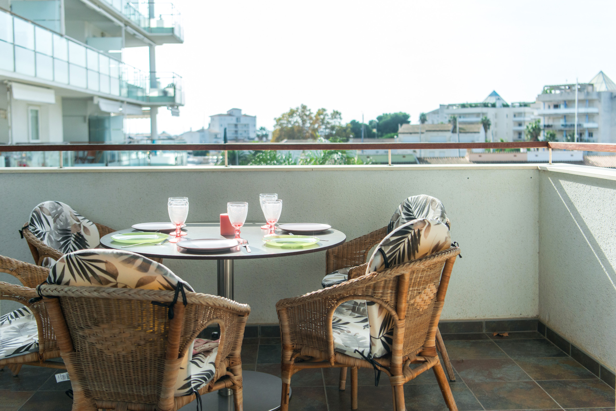 Dispõe de mobiliário de jardim, 11 m² de terraço, máquina de lavar roupa, ferro de engomar, varanda, aquecimento de bomba de calor, ar-condicionado, piscina comunitária, parking coberto no mesmo edifício, Televisão.