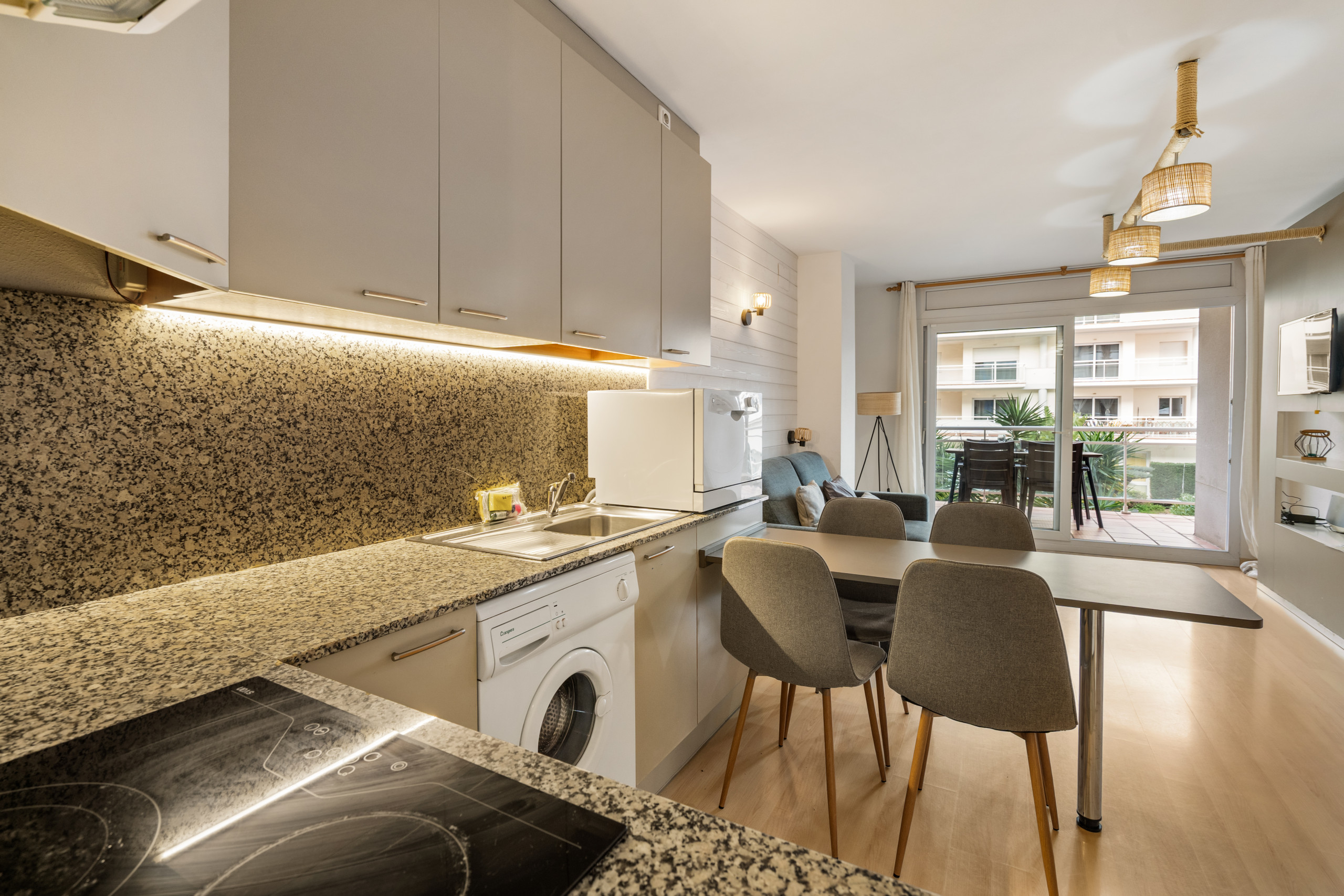 O apartamento em Rosas / Roses tem 2 quarto(s) e capacidade para 6 pessoa(s). Alojamento de 48 m² cómodo e moderno, com vistas para a piscina. Encontra-se a 100 m , 100 m , 1 km do supermercado, 2 km da praia de areia, 70 km do aeroporto, 175 km e localizado numa zona residencial zone e num complexo residencial.Dispõe de elevador, terraço, máquina de lavar roupa, ferro de engomar, acesso internet (wifi), aquecimento de bomba de calor, ar-condicionado, piscina comunitária, Televisão.A kitchenette, está equipada com frigorífico, microondas, congelador, máquina de lavar louça, louça/talheres, utensílios/cozinha e máquina de café.