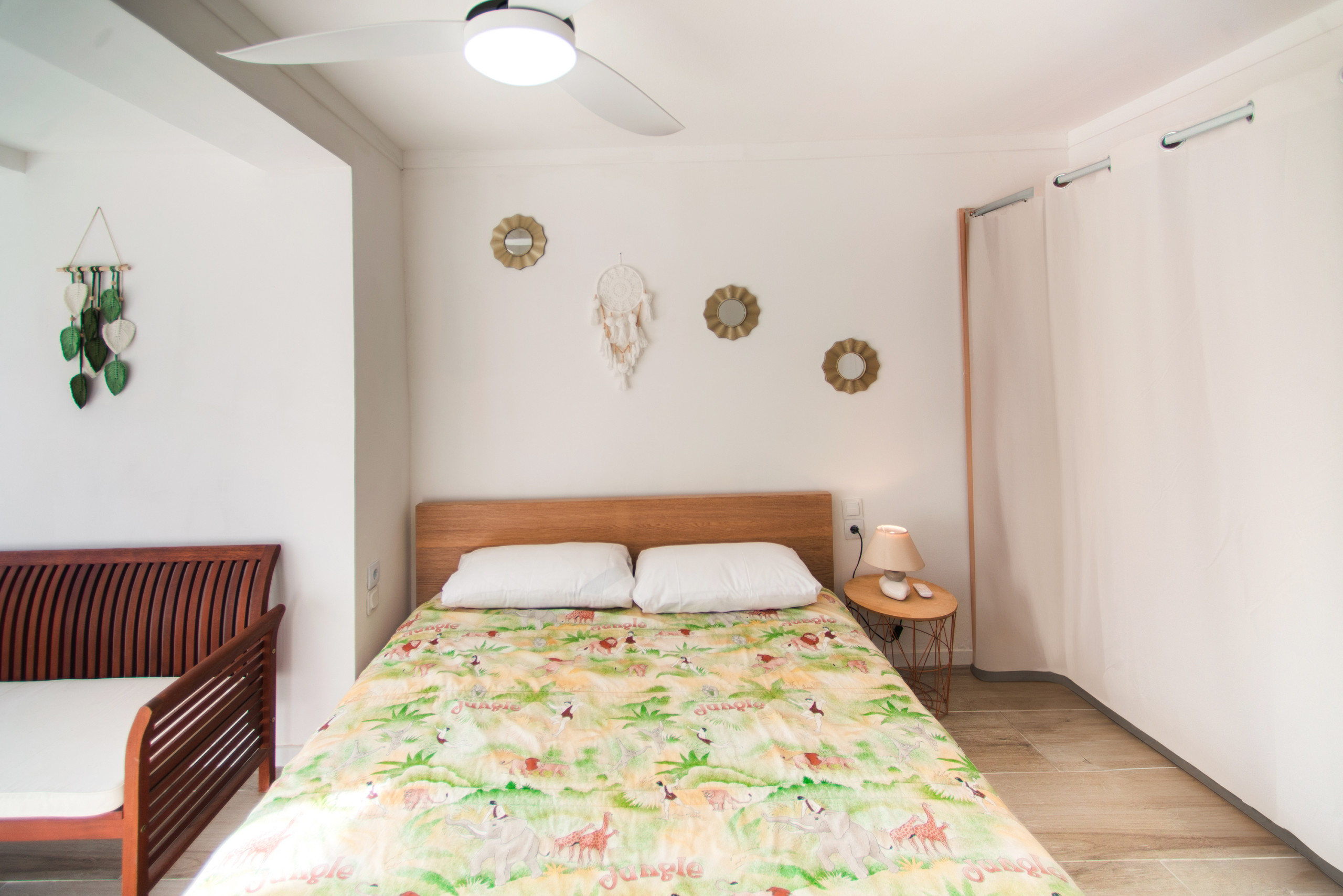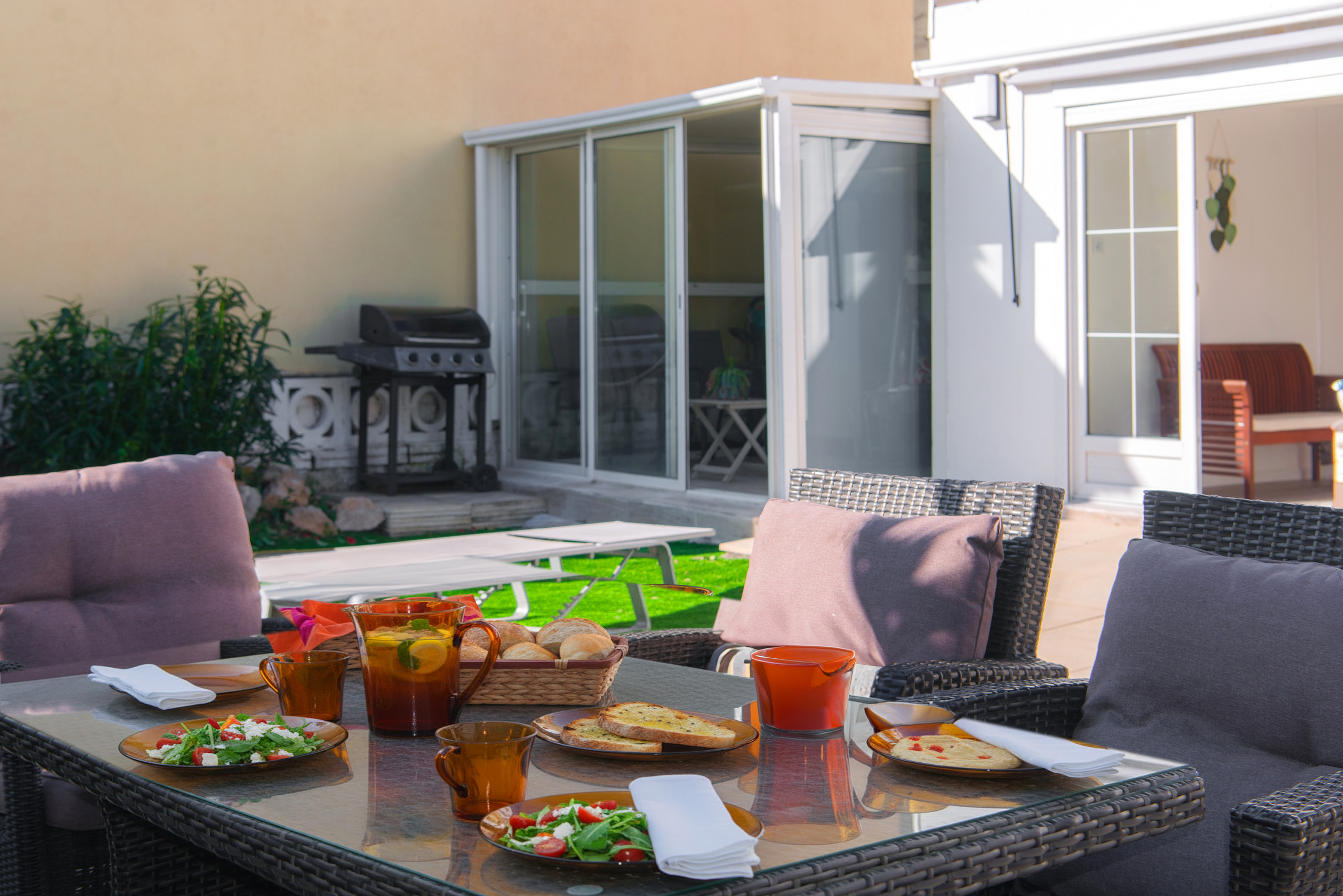 Dispõe de jardim, mobiliário de jardim, máquina de lavar roupa, churrasqueira, ferro de engomar, secador de cabelo, aquecimento de bomba de calor, ar-condicionado, estacionamento ao ar livre no mesmo edifício, Televisão.