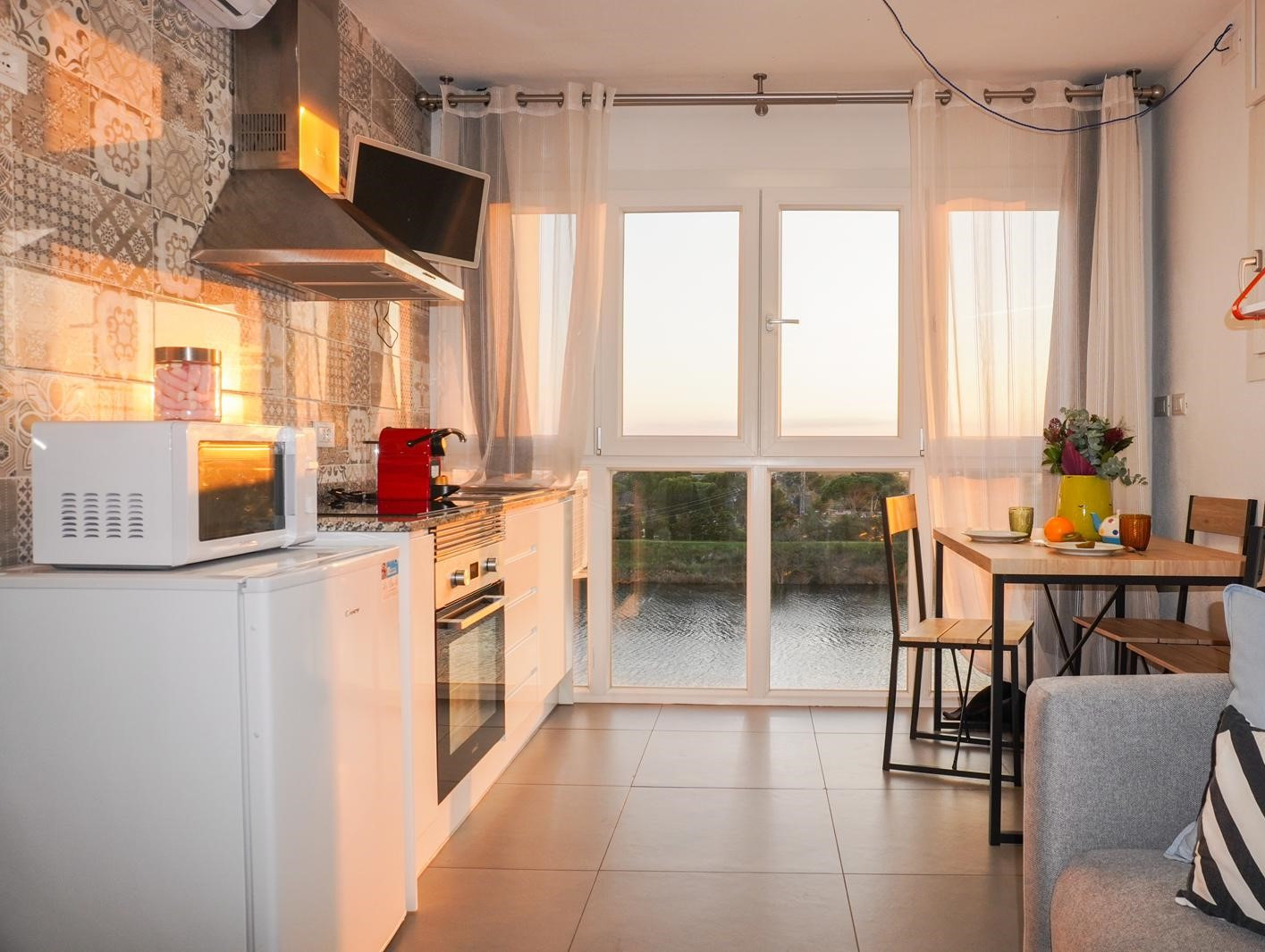 O estúdio em Empuriabrava tem capacidade para 2 pessoa(s). Alojamento de 33 m² acolhedor e muito luminoso, com vistas para o rio. Encontra-se a 100 m da cidade, 100 m , 100 m , 350 m do supermercado, 500 m da praia de areia, 65 km do aeroporto, 165 km e localizado numa zona encantadora zone e perto de comércio e restaurantes.Dispõe de elevador, máquina de lavar roupa, acesso internet (wifi), aquecimento de bomba de calor, ar-condicionado, estacionamento ao ar livre, Televisão.A kitchenette, de vitrocerâmica, está equipada com frigorífico, microondas, forno, louça/talheres, utensílios/cozinha e máquina de café.