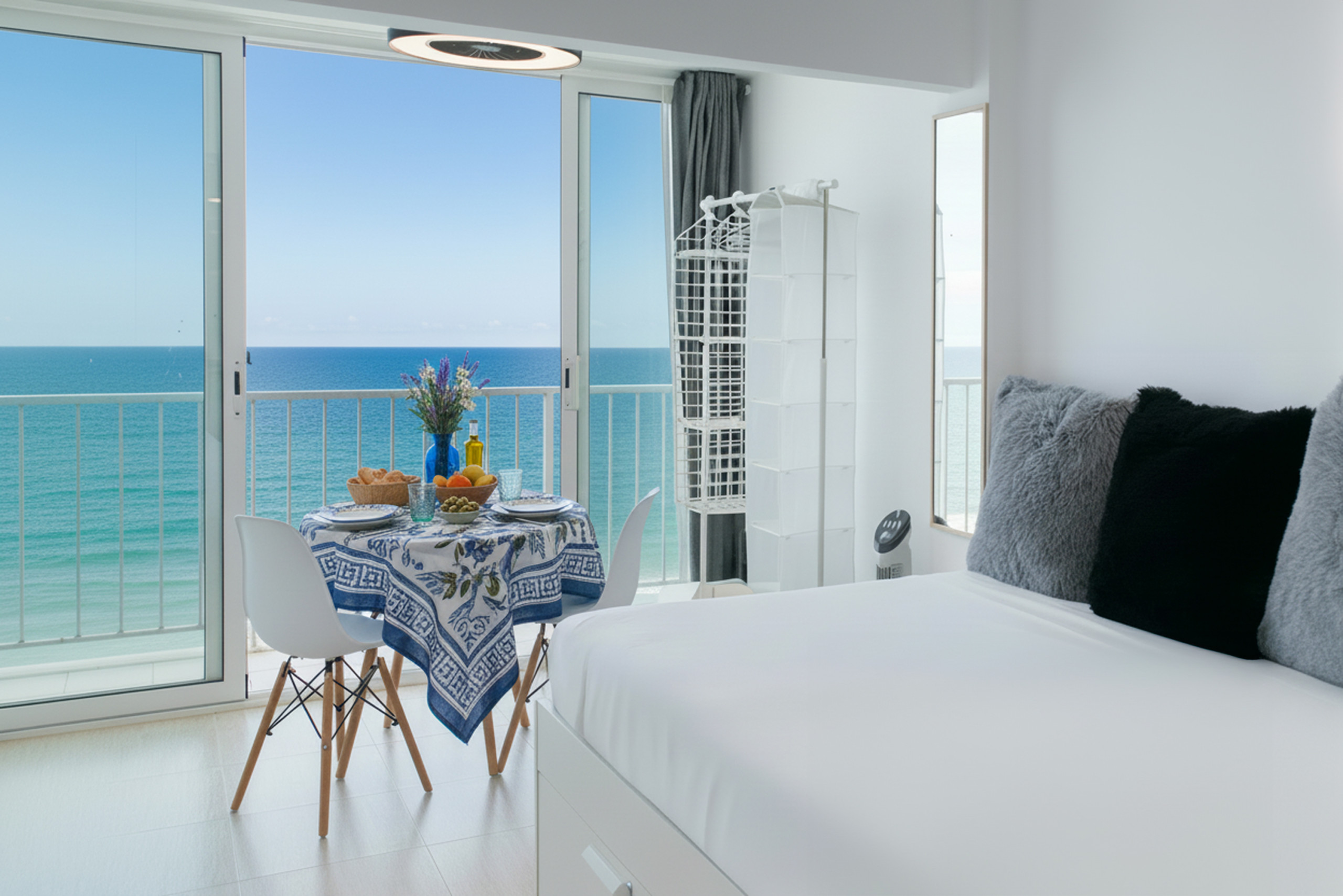 Alojamento de 25 m² acolhedor e moderno, localizado na primeira linha de praia, com vistas para o mar.