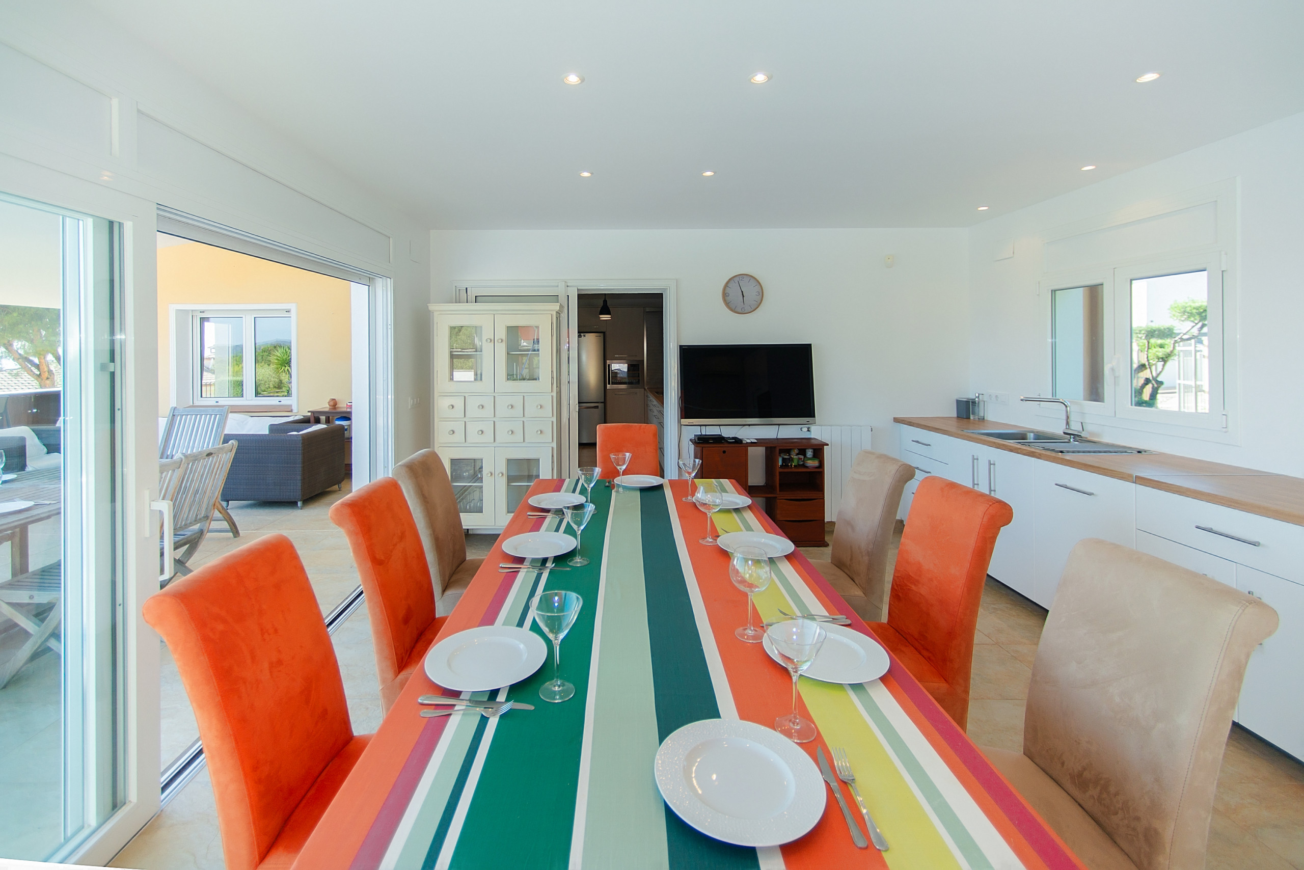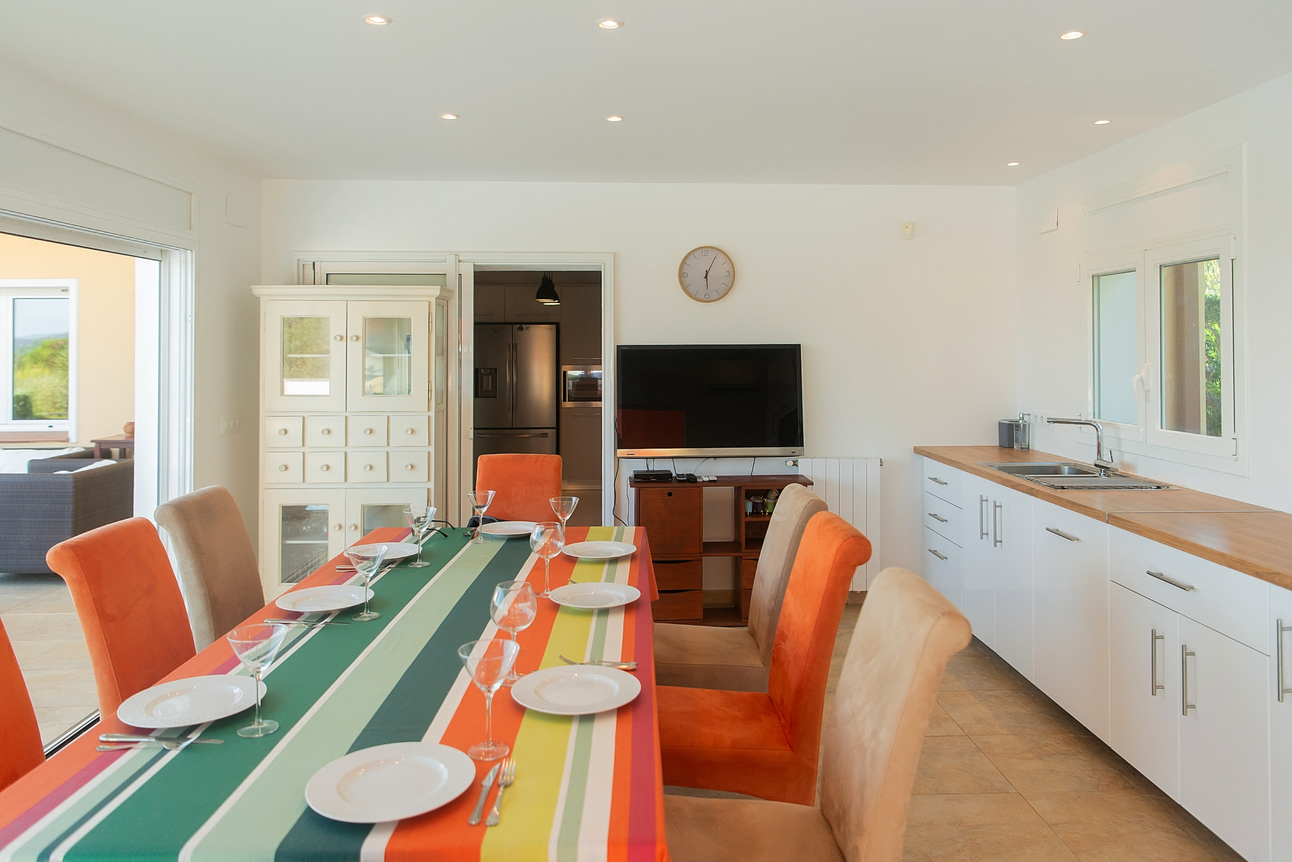 A cozinha é independente, de vitrocerâmica, está equipada com frigorífico, microondas, forno, congelador, máquina de lavar louça, louça/talheres, máquina de café, torradeira, jarro eléctrico e máquina de sumos.